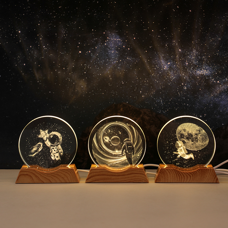 宇航员探索宇宙星空发光水晶片小夜灯摆件桌面装饰生日礼物高级感