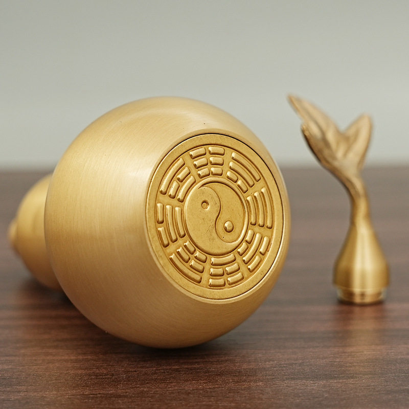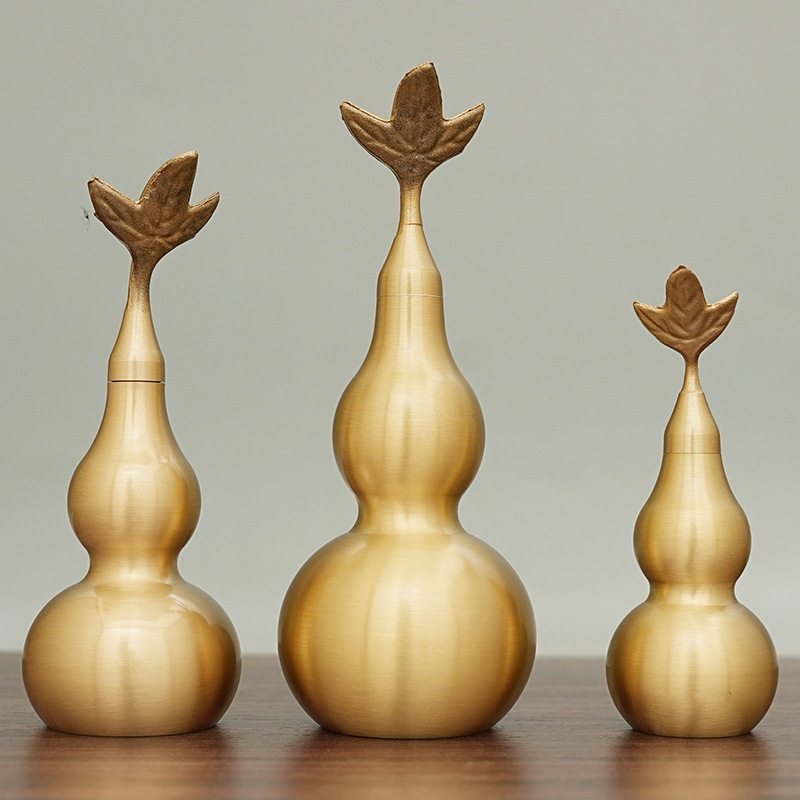 有叶收藏黄铜葫芦摆件福禄葫芦家居装饰工艺品光面铜葫芦一件代发