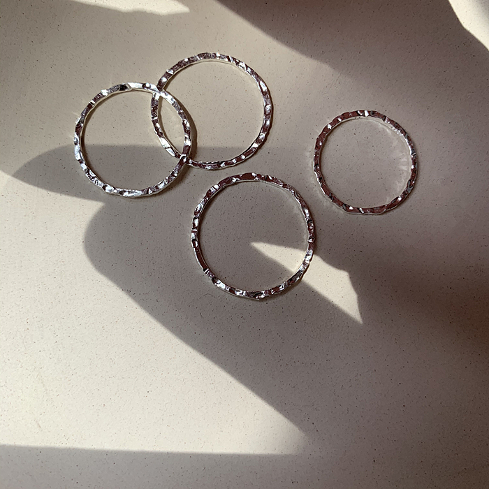 *亮亮的*极简不规则锤纹戒指女小众纹理细戒指S925纯银指环尾戒