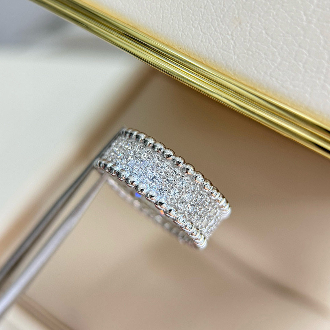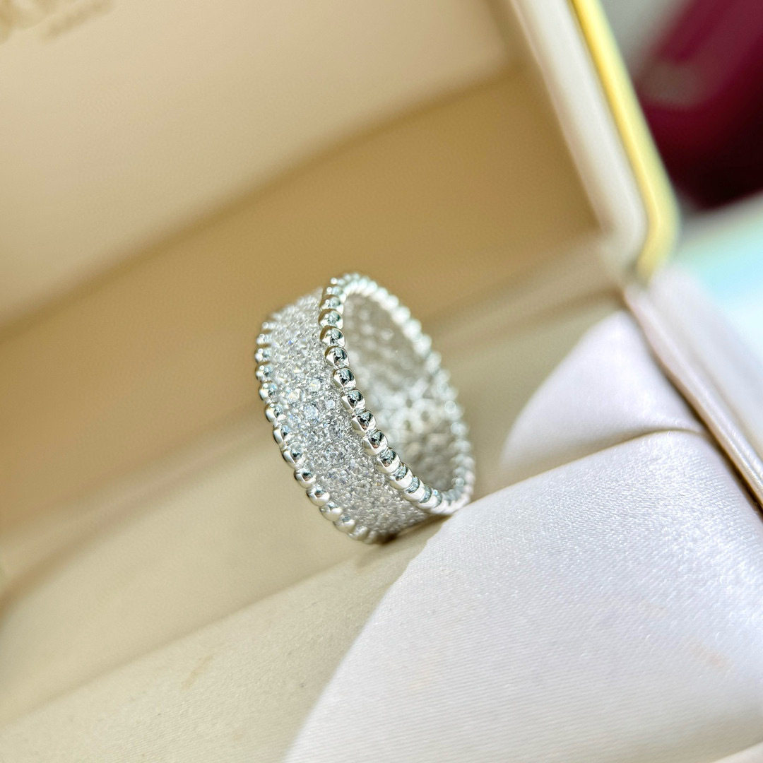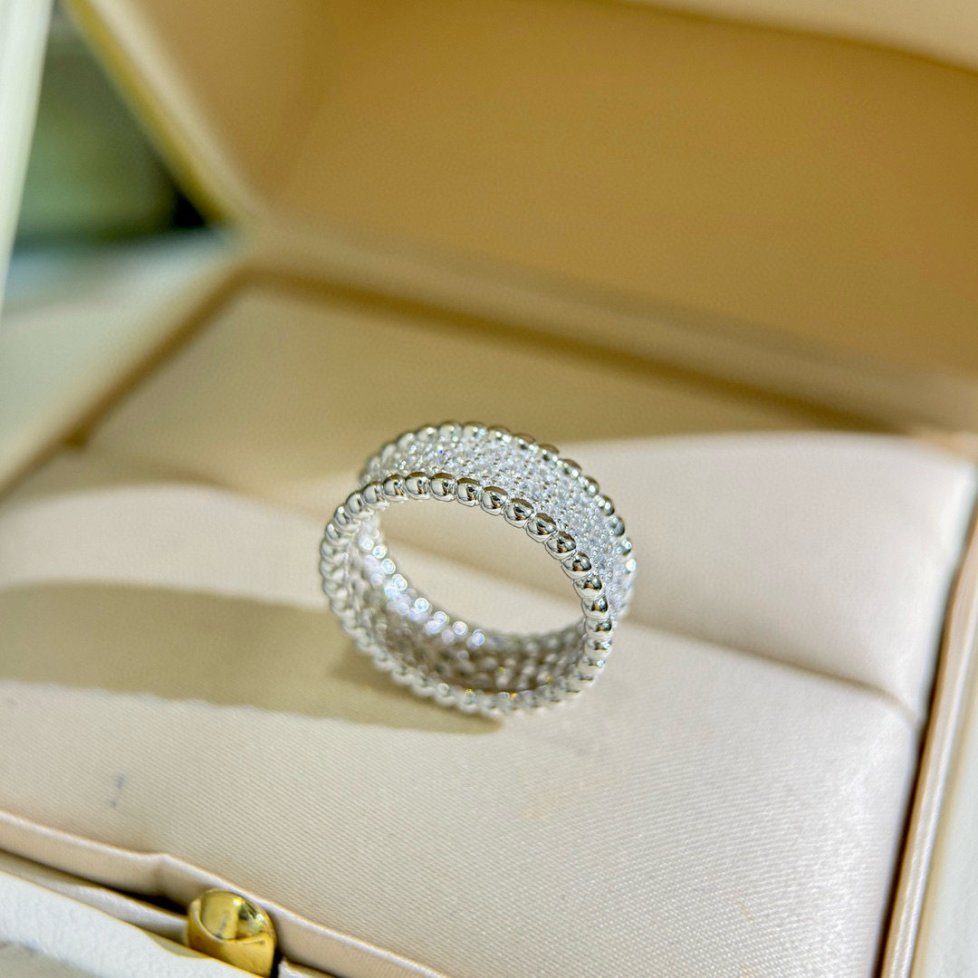 S925纯银精工高级感圆珠麻花满钻戒指女宽版轻奢珠边时尚百搭