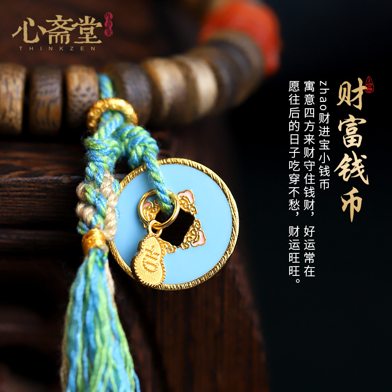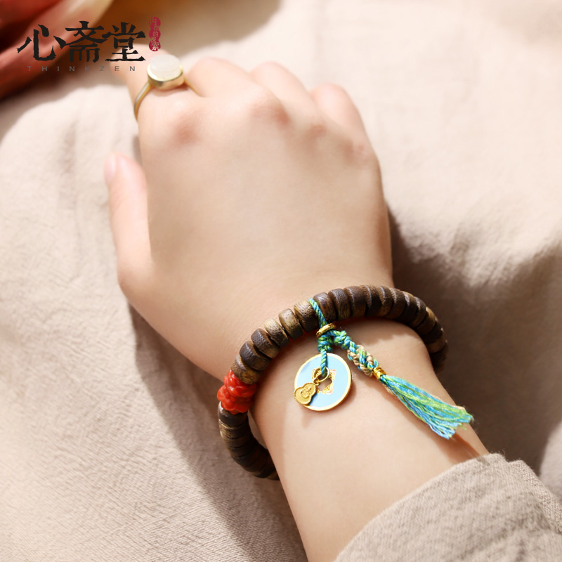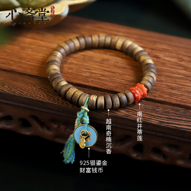 心斋堂【奇楠沉香】海南绿棋楠沉香手串南红奇楠手链财富钱币女款