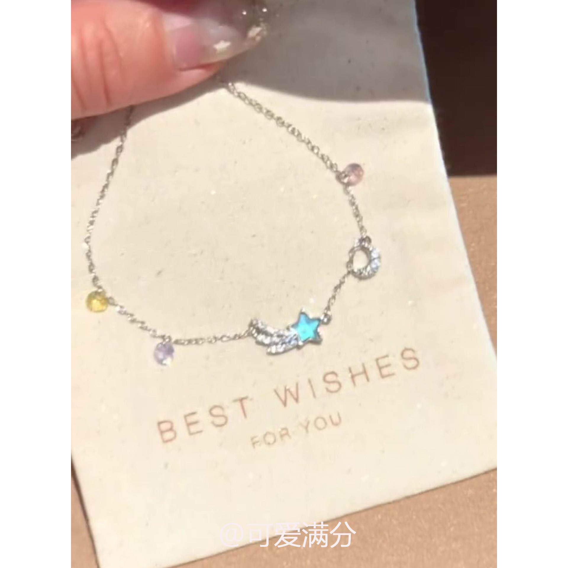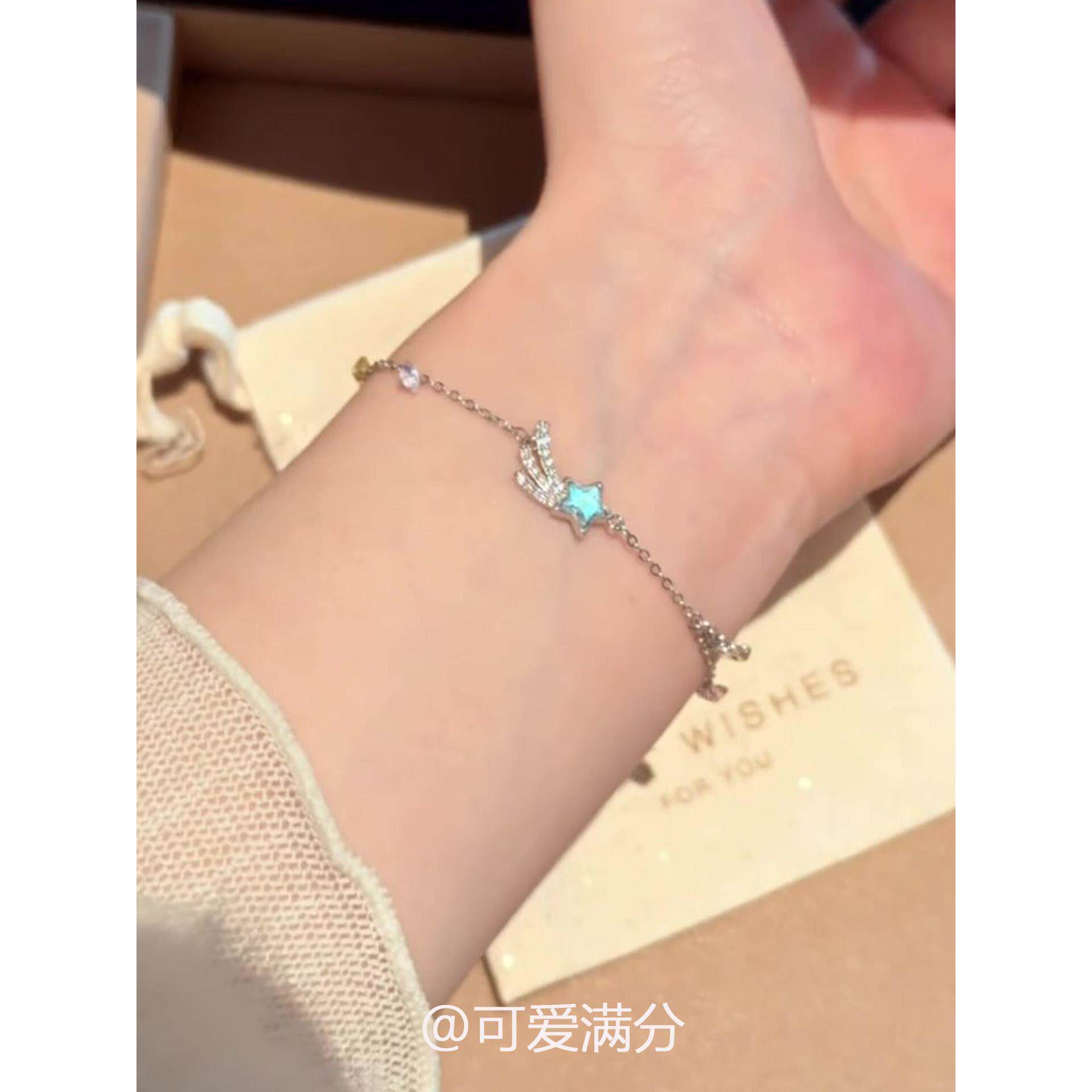 爆闪蓝色流星水滴流苏手链女2026新款轻奢小众高级感设计百搭手饰