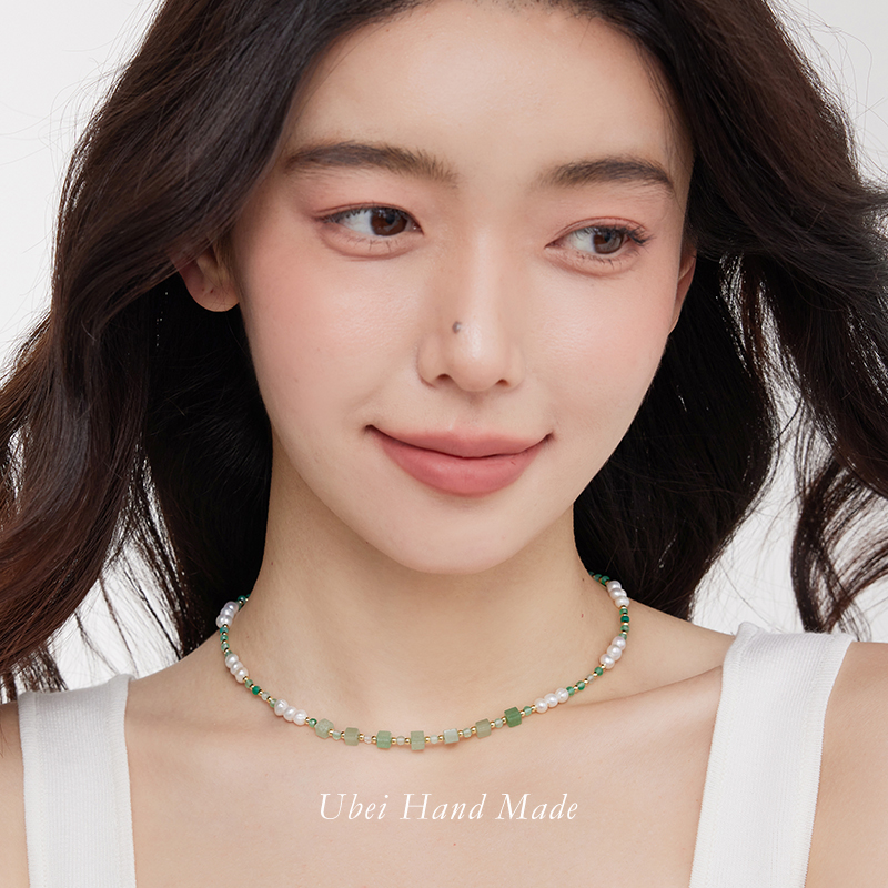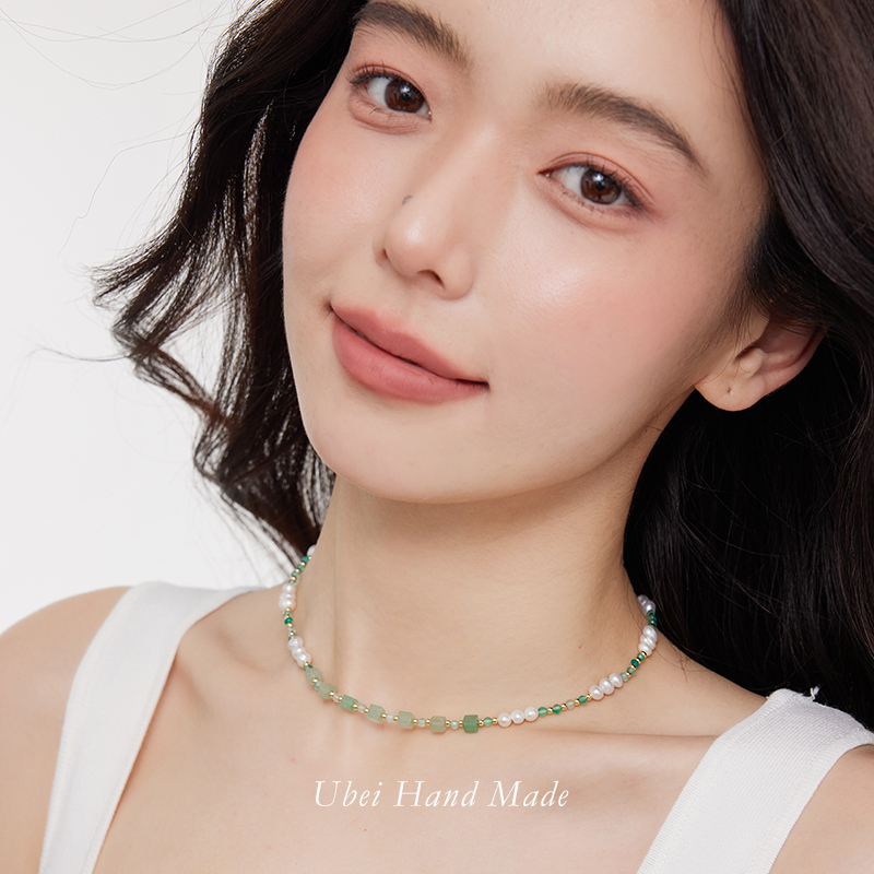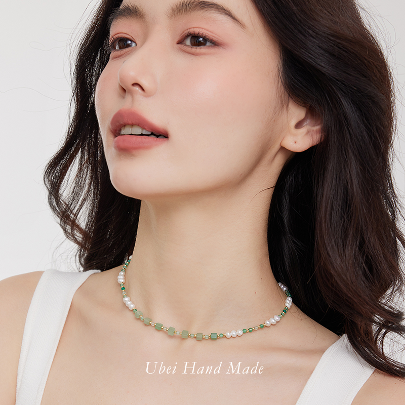 有北手作 小众绿色天然石串珠项链高级感设计轻奢锁骨链新中式