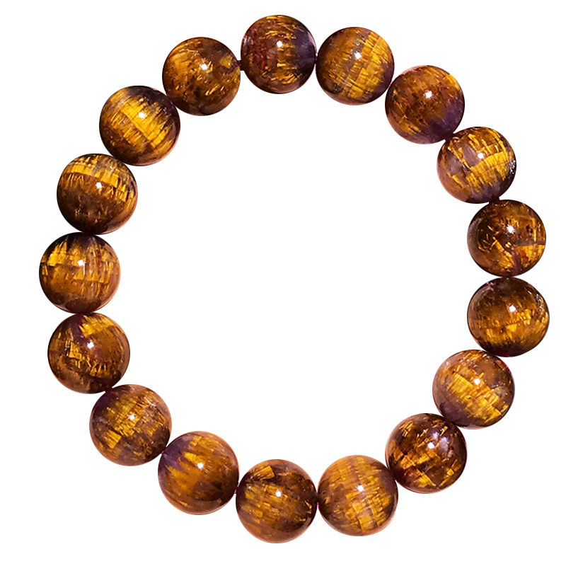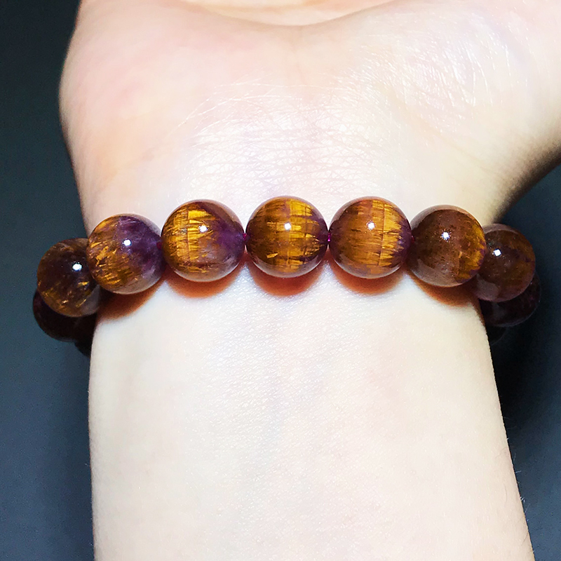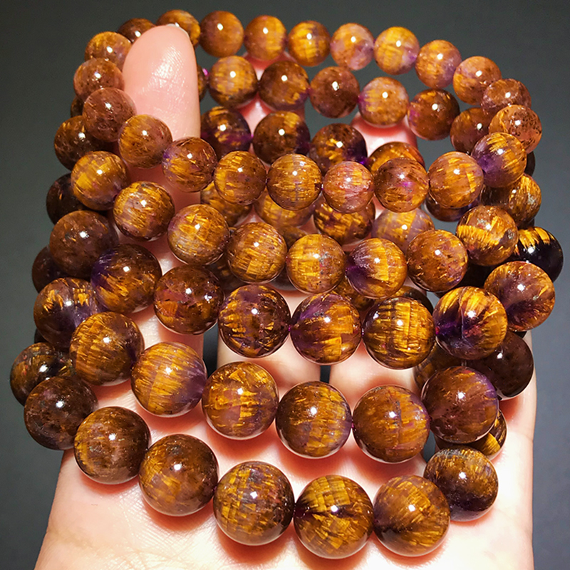 珍藏级极光紫钛晶手链极光23水晶板钛晶男女金发晶手串紫黄多宝珠
