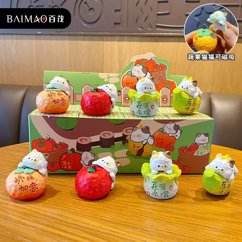 百茂原创木雕风蔬果喵喵创意磁吸美好寓意桌面树脂装饰品车载摆件