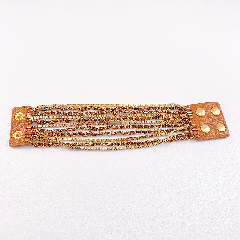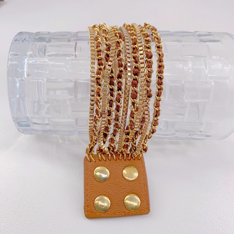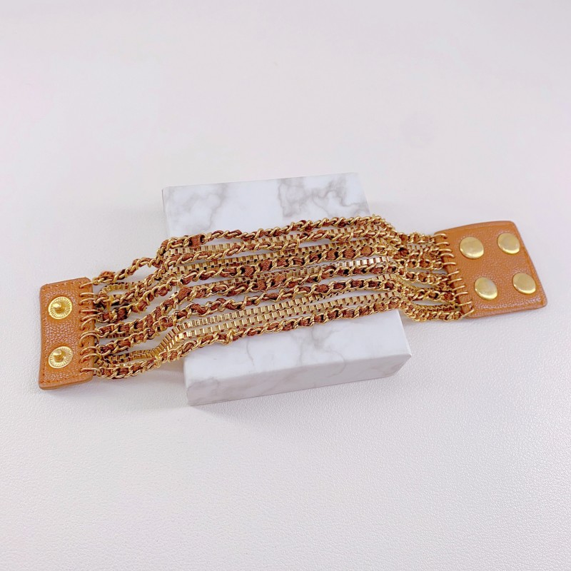 INS冷淡风小众设计高级金属质感手镯欧美朋克皮质感腕带气质手链