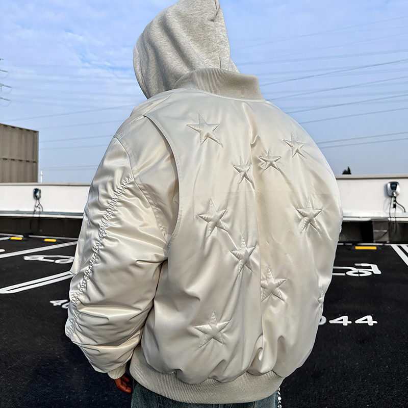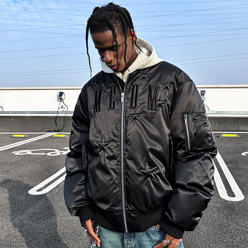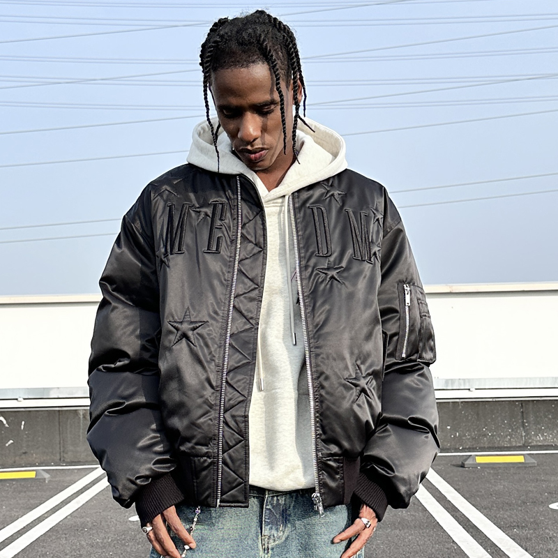 【侯明昊同款】 MEDM BLACK黑线超高充绒量星星尼龙MA1羽绒服男冬
