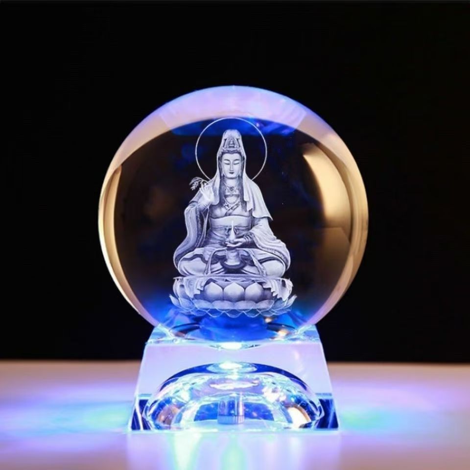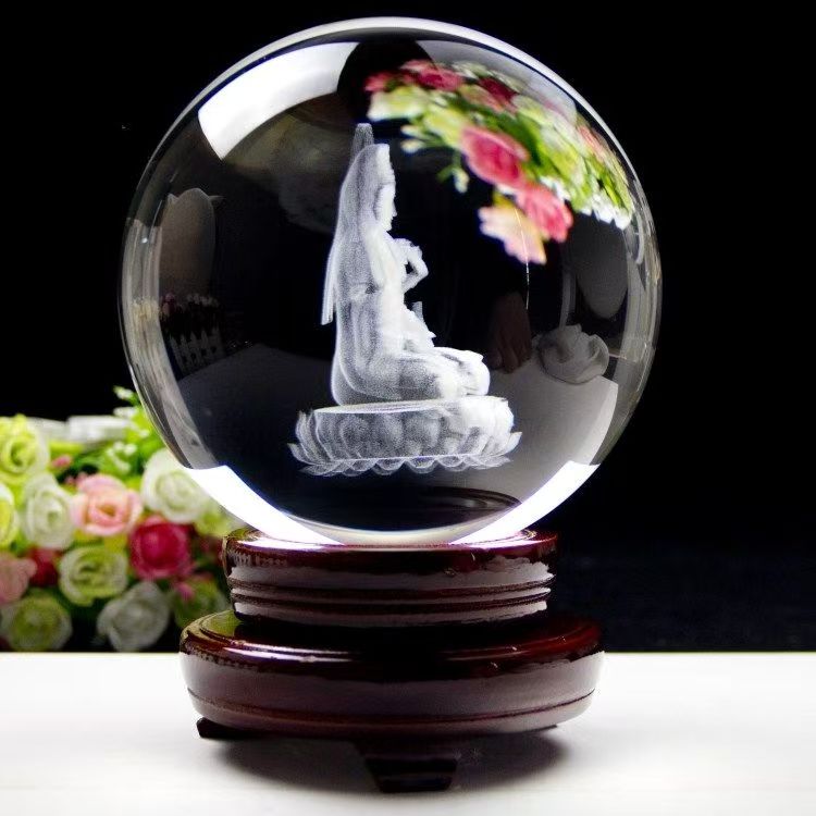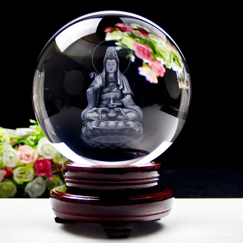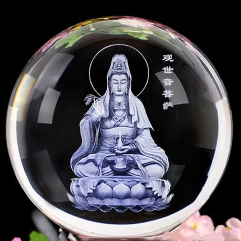 观音菩萨佛像水晶球立体内雕摆件观音娘娘菩萨保佑办公室居家装饰