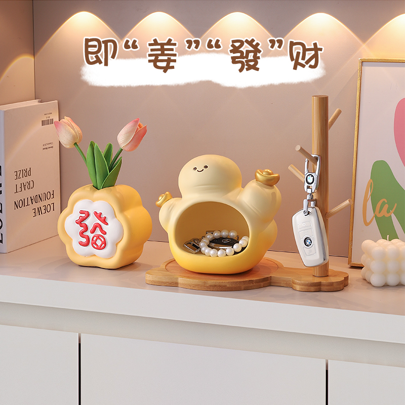 创意入户门玄关钥匙收纳即将发财摆件客厅桌面装饰品乔迁新居礼物