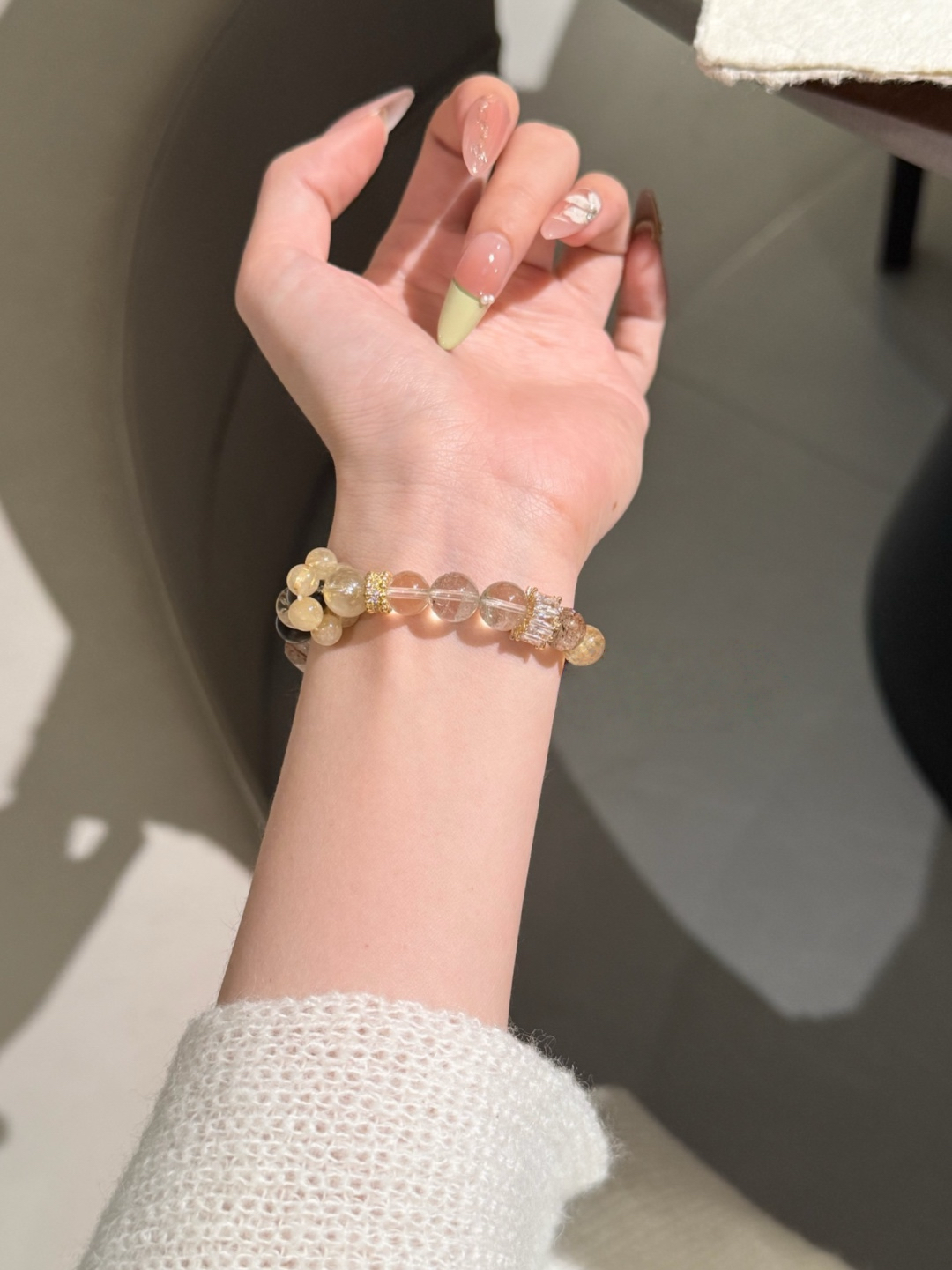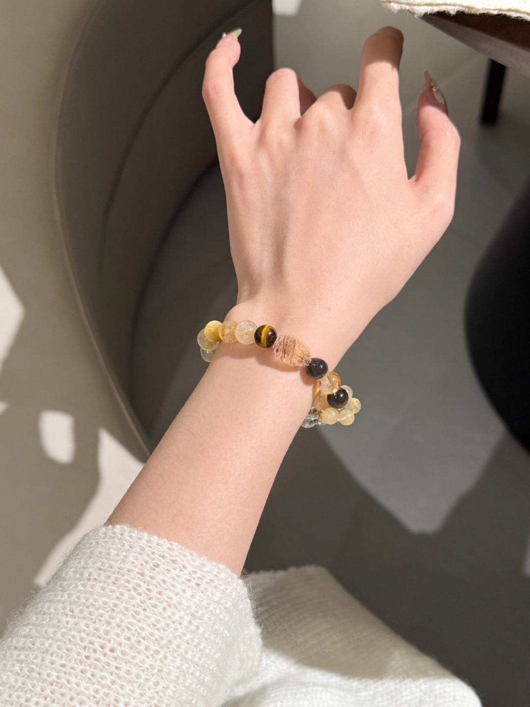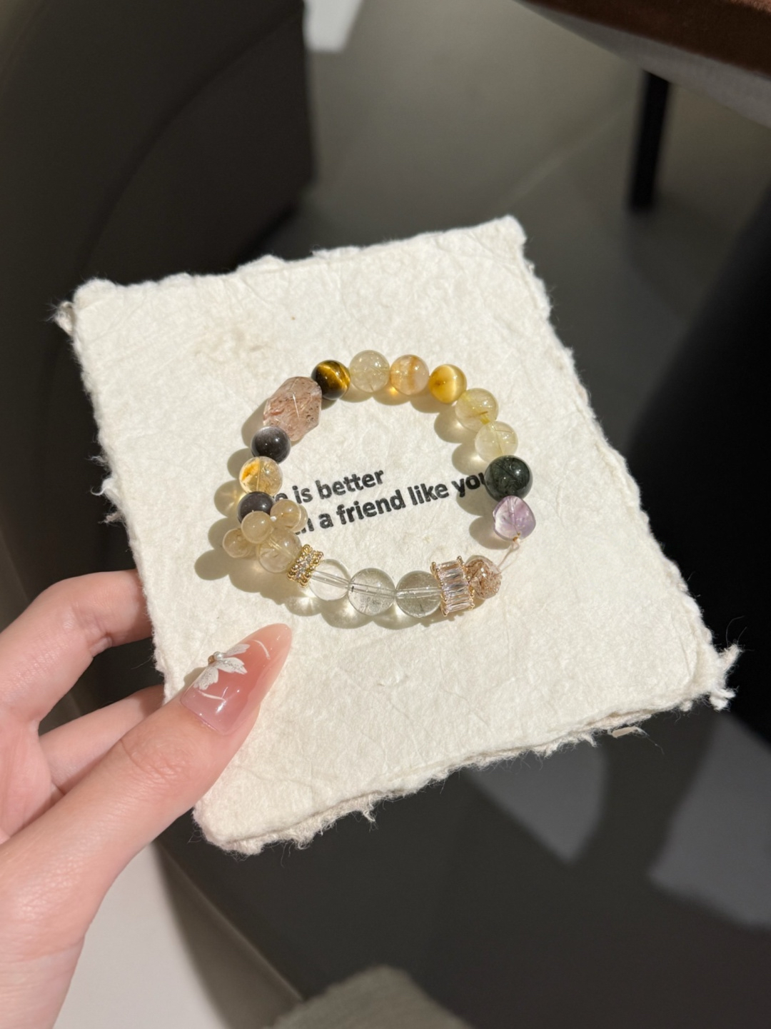 伊能静同款水晶手串黑金超随型虎眼石金发晶绿幽灵多宝手链
