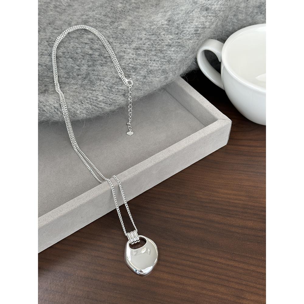 韩系极简风银色几何长款项链小众日常通勤高级感百搭毛衣链女配饰