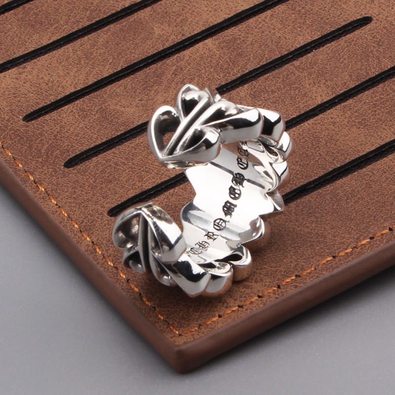 s925纯银饰复古宫廷船锚童军花开口戒指潮男泰银百搭朋克指环现货