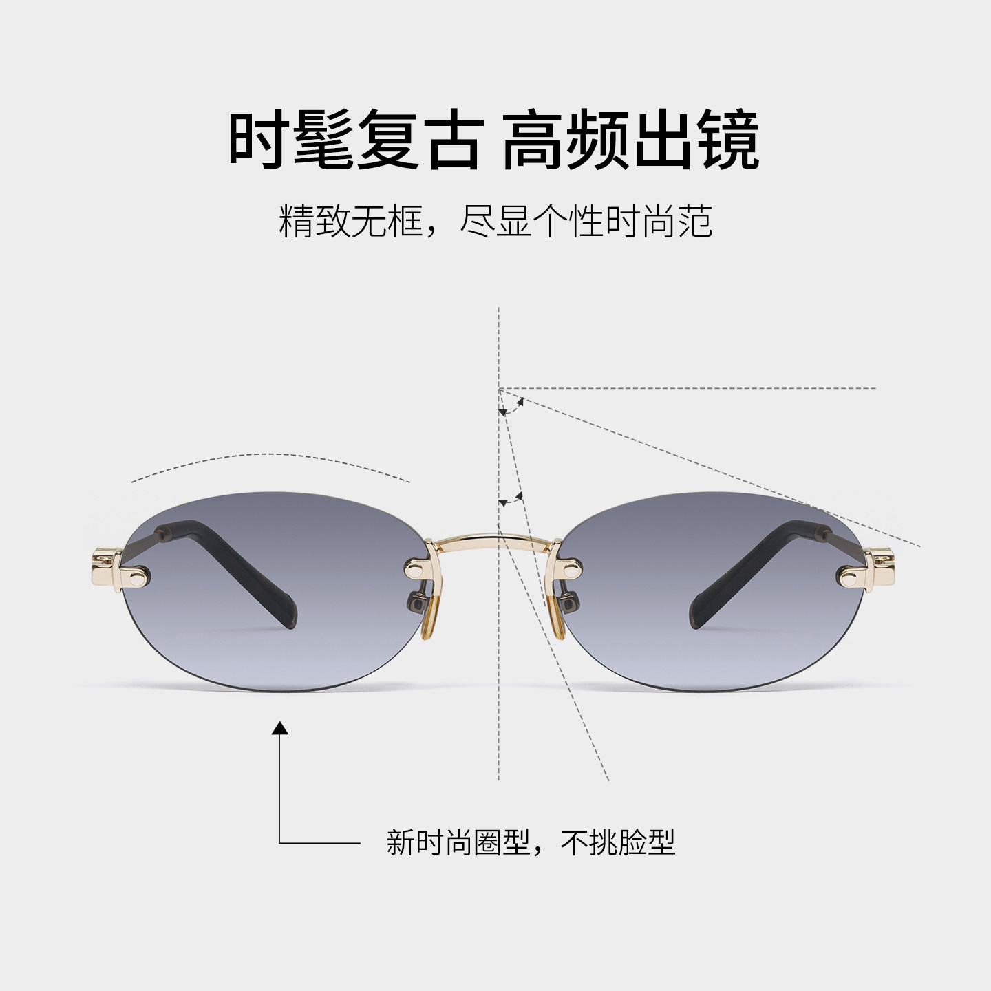 胡先煦同款无框猫眼墨镜男老钱风椭圆太阳镜高级感遮阳防紫外线