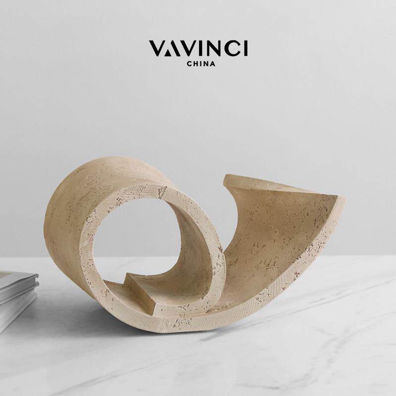 梵其现代轻奢几何环形摆件创意艺术彷洞石样板间客厅电视柜装饰品