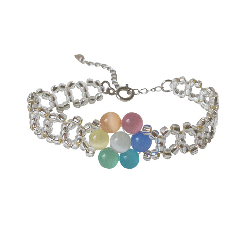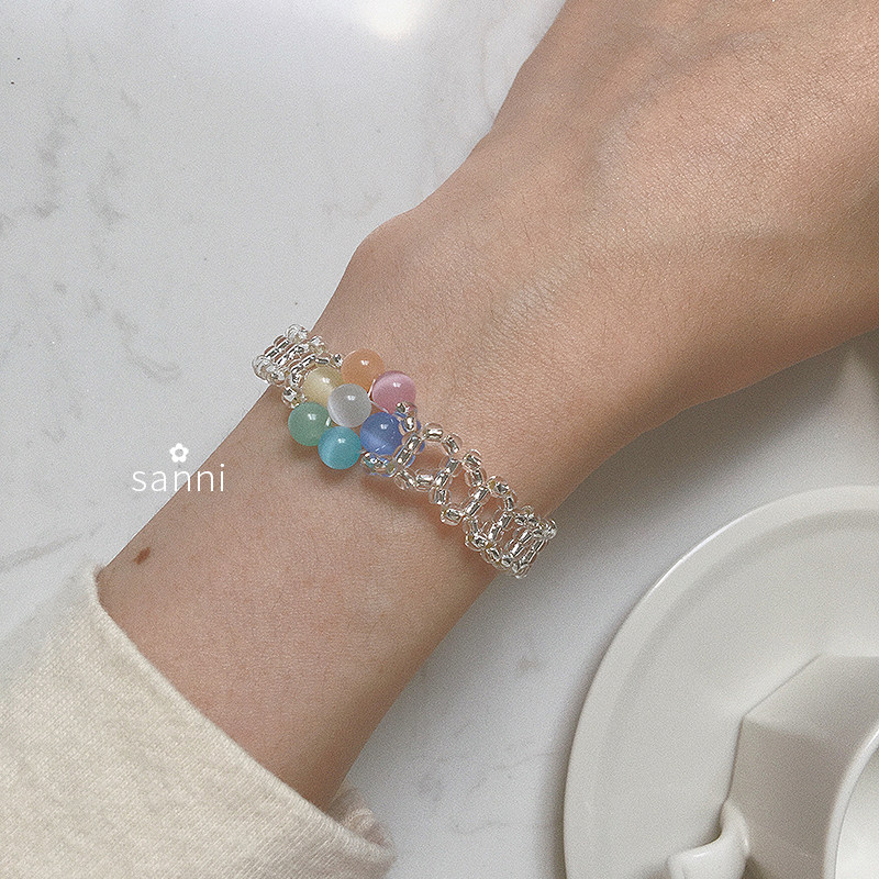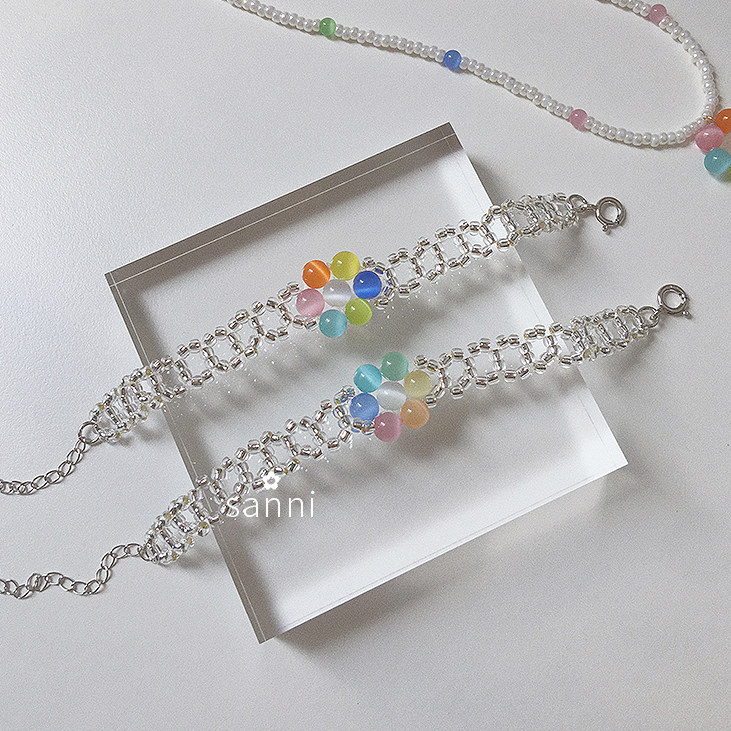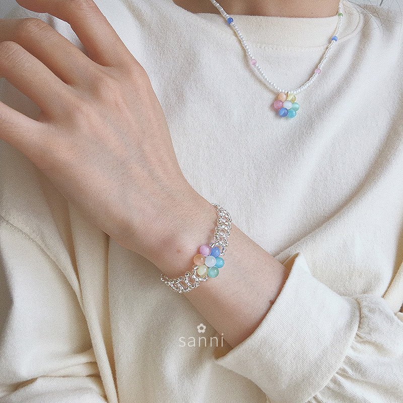 SANNI清新可爱太阳花美好童趣马卡龙糖果色猫眼石花朵手链