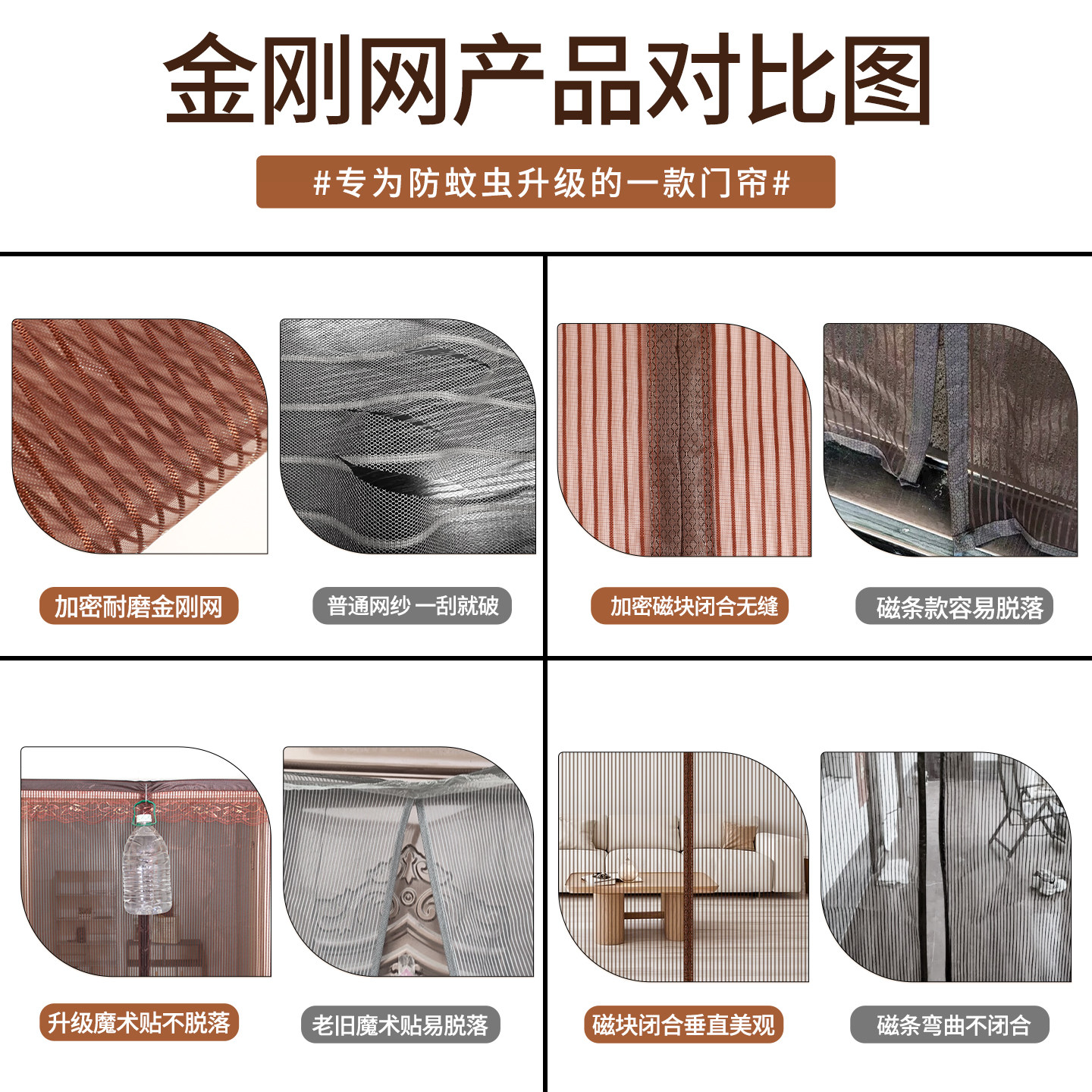 新款金刚网磁吸防蚊门帘夏季家用免打孔高档磁吸纱门纱窗定制自粘