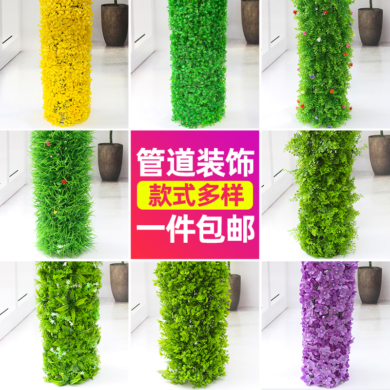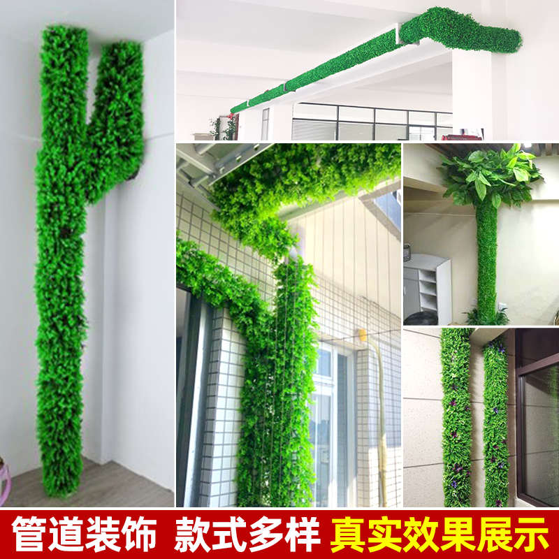 包下水管道装饰遮挡仿真树皮绿植物阳台管子美化塑料假花藤条叶子