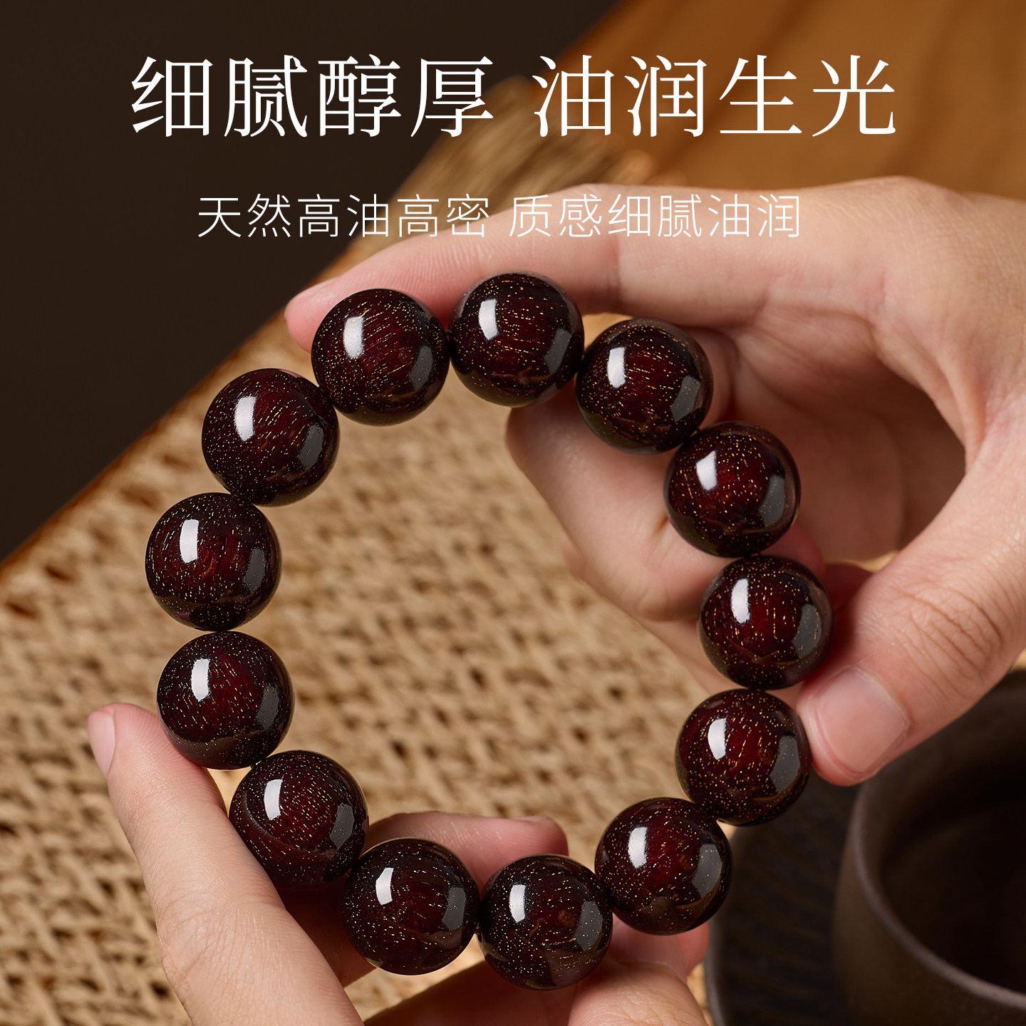 庆祥泰印度小叶紫檀手串男士高品质收藏级真品满金星盘玩木质手链