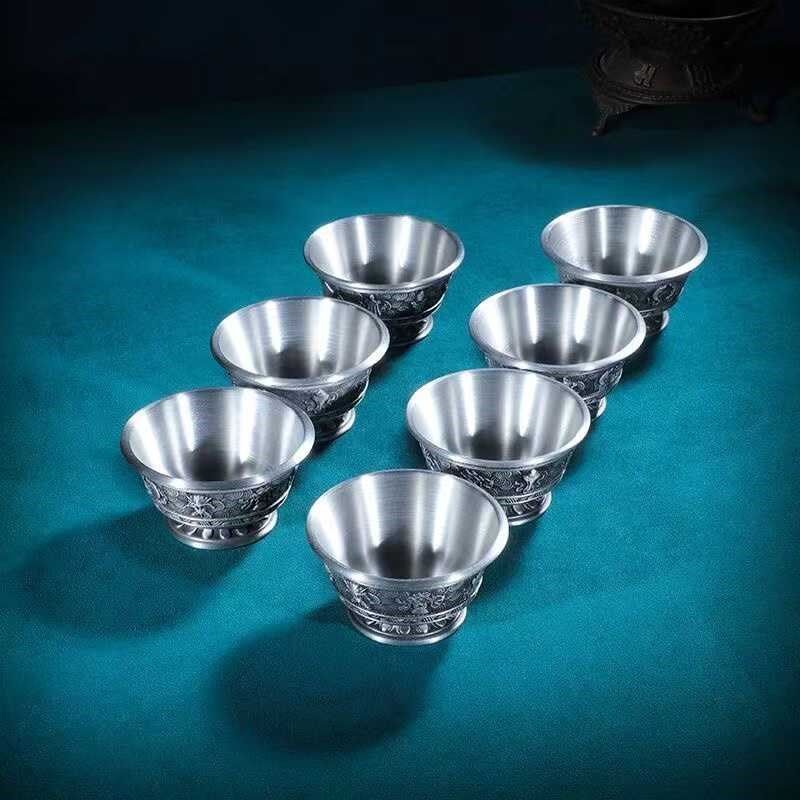 纯锡护法杯八吉祥供水杯供酒杯家用供奉摆件供水碗杯不变色不生锈