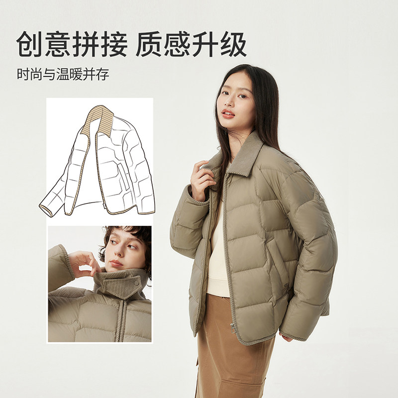 坦博尔90%鸭绒秋季休闲时尚短款轻薄衬衫领羽绒服女装高级感保暖