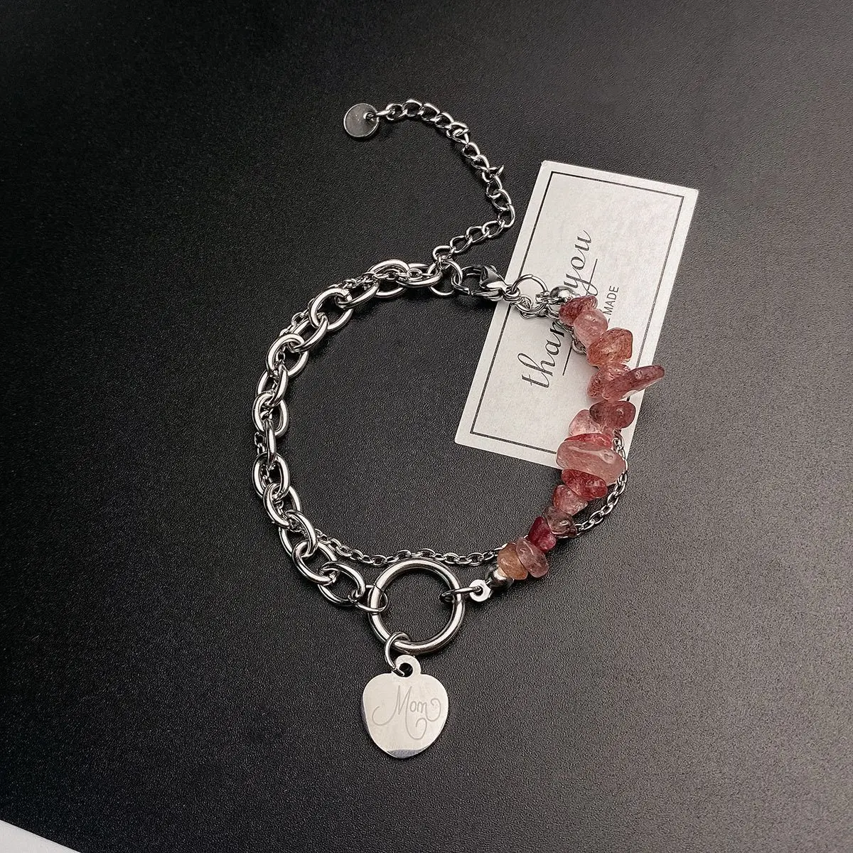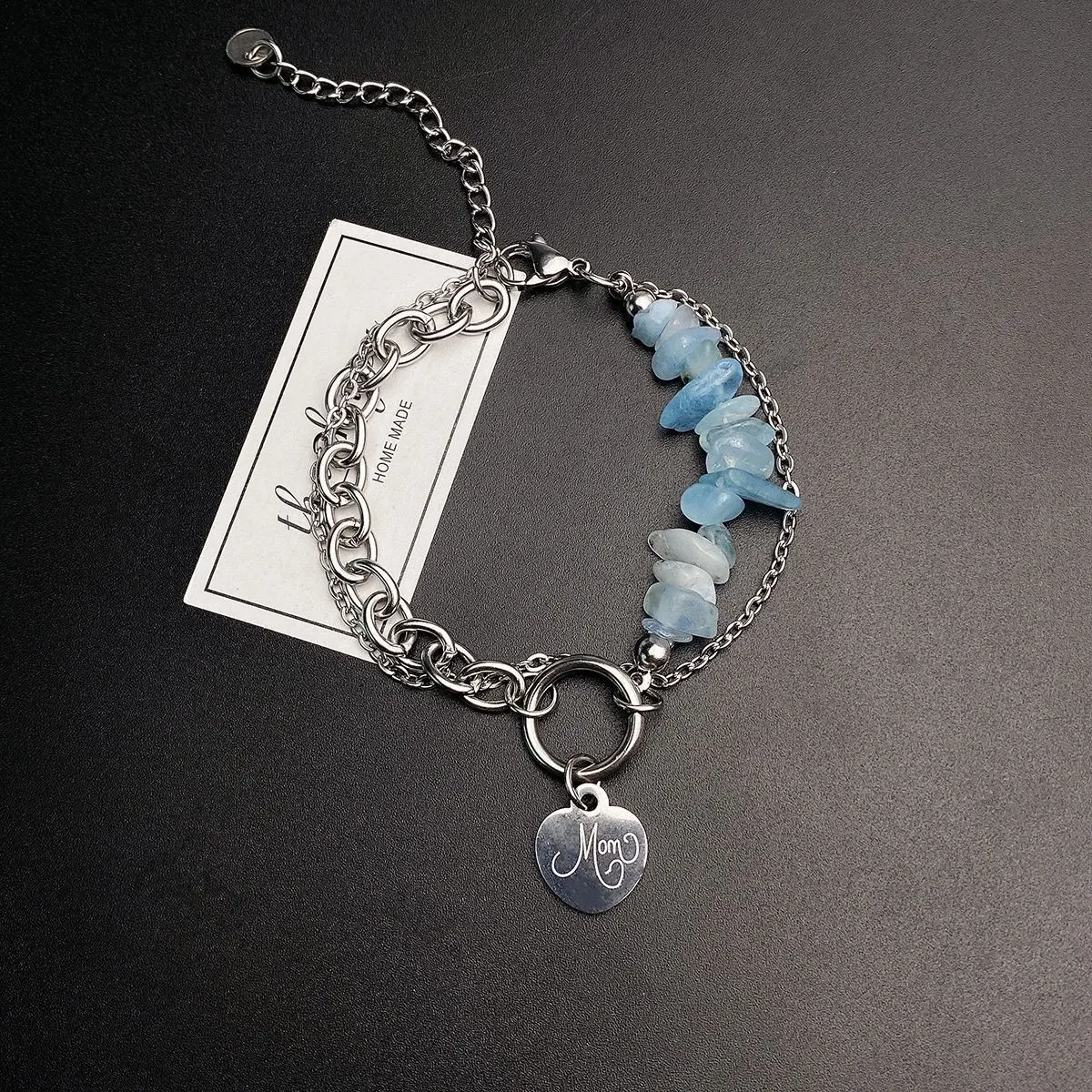 新款不规则蓝色粉红色石头串拼接手链个性气质小众创意潮手饰品夏