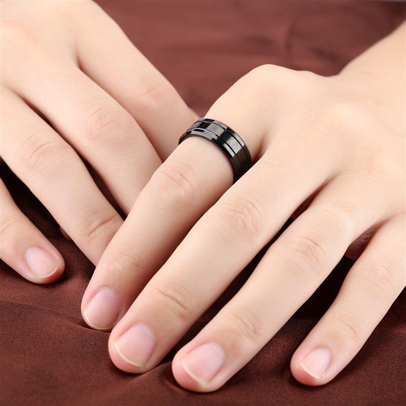 时尚简约黑色钨钢宽戒指霸气个性男戒食指指环潮人装饰戒子不掉色