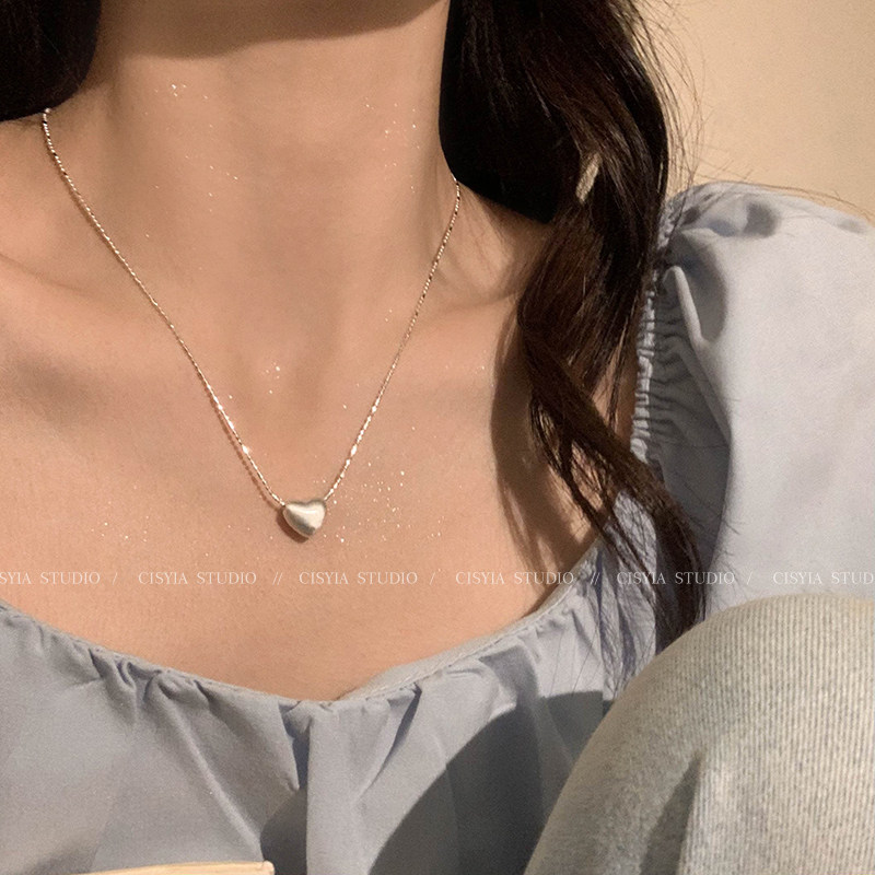 爱心方块项链女轻奢小众设计高级感锁骨链简约百搭毛衣链精致气质