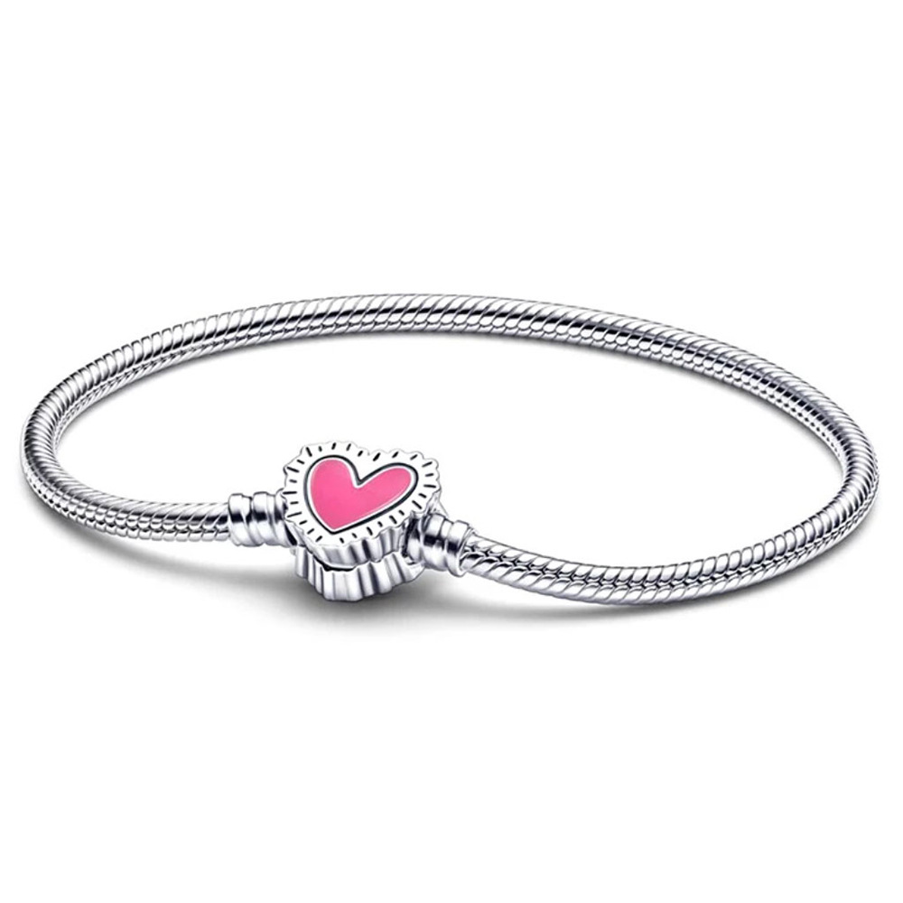 梵潘家帝白铜粉色爱心飞贼 扣头手镯 diy配件基础手链蛇骨链女