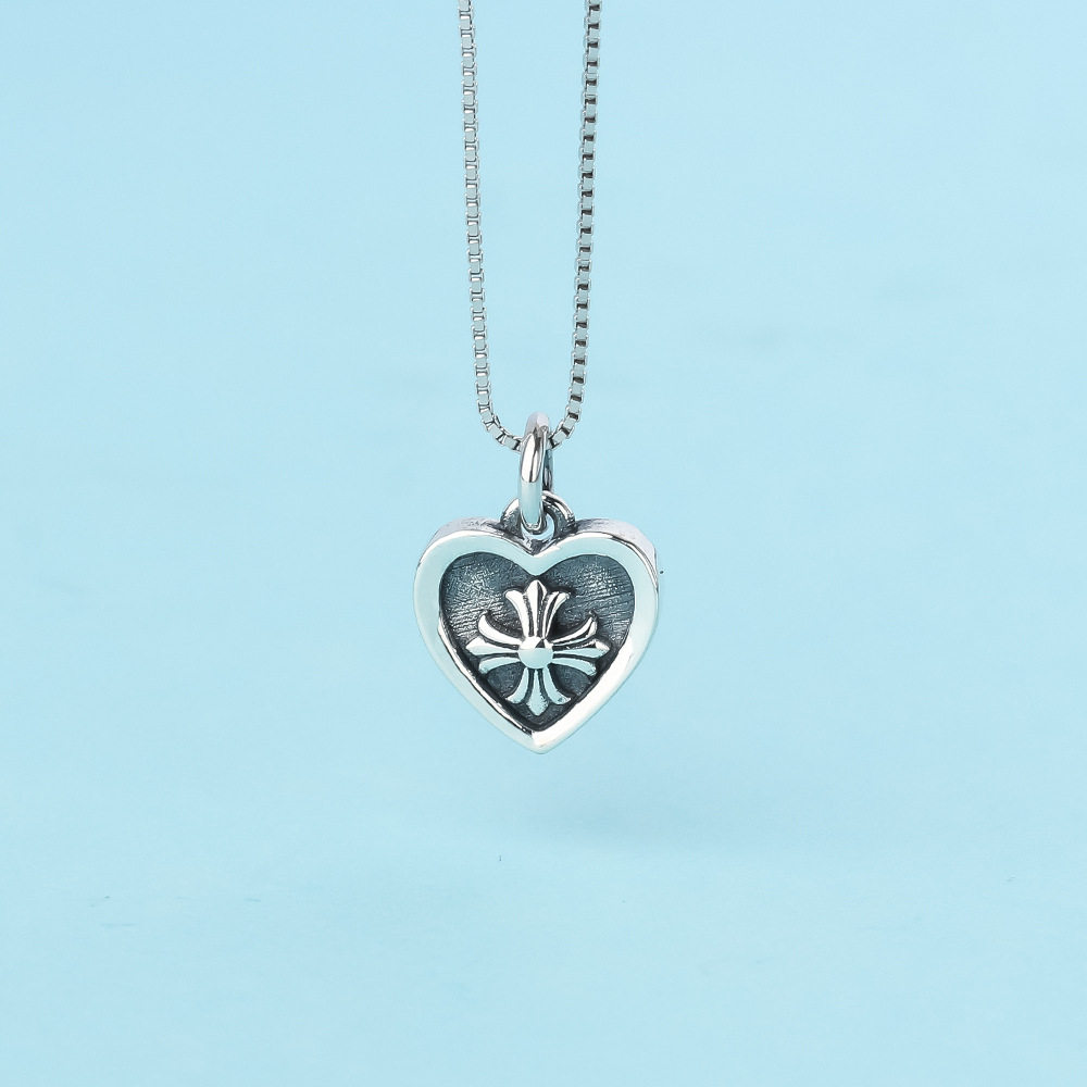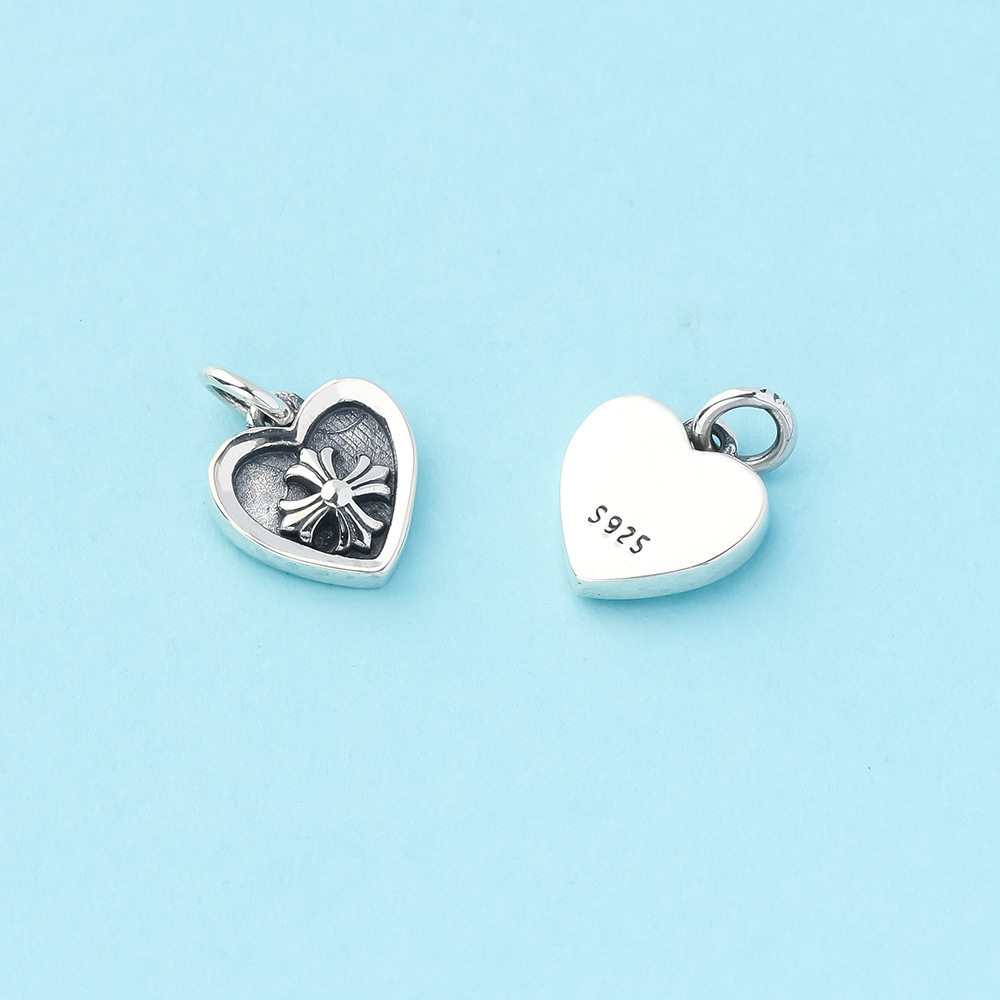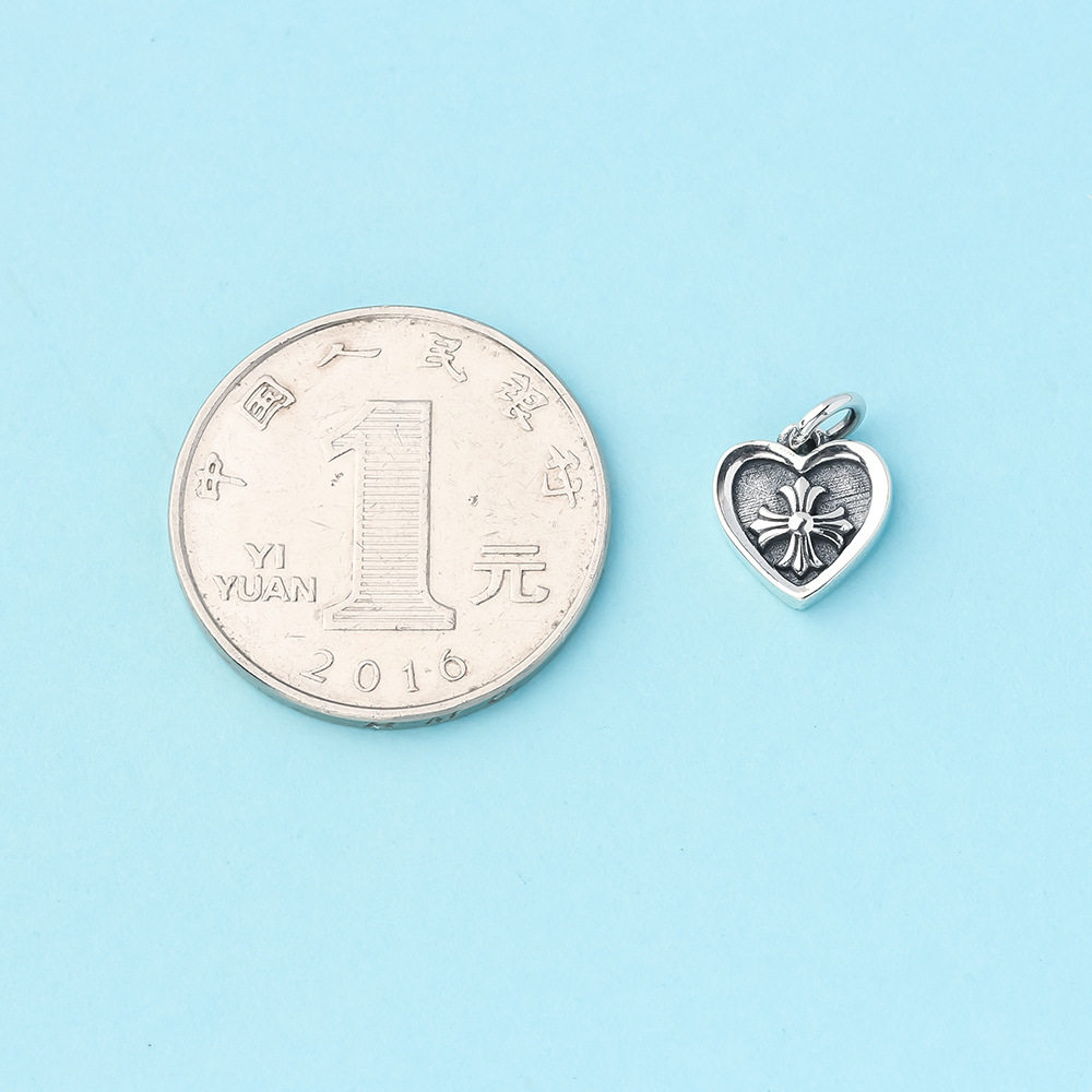 韩版通体925银个性心形十字架吊坠diy银珠珠手链配件欧美风格配饰