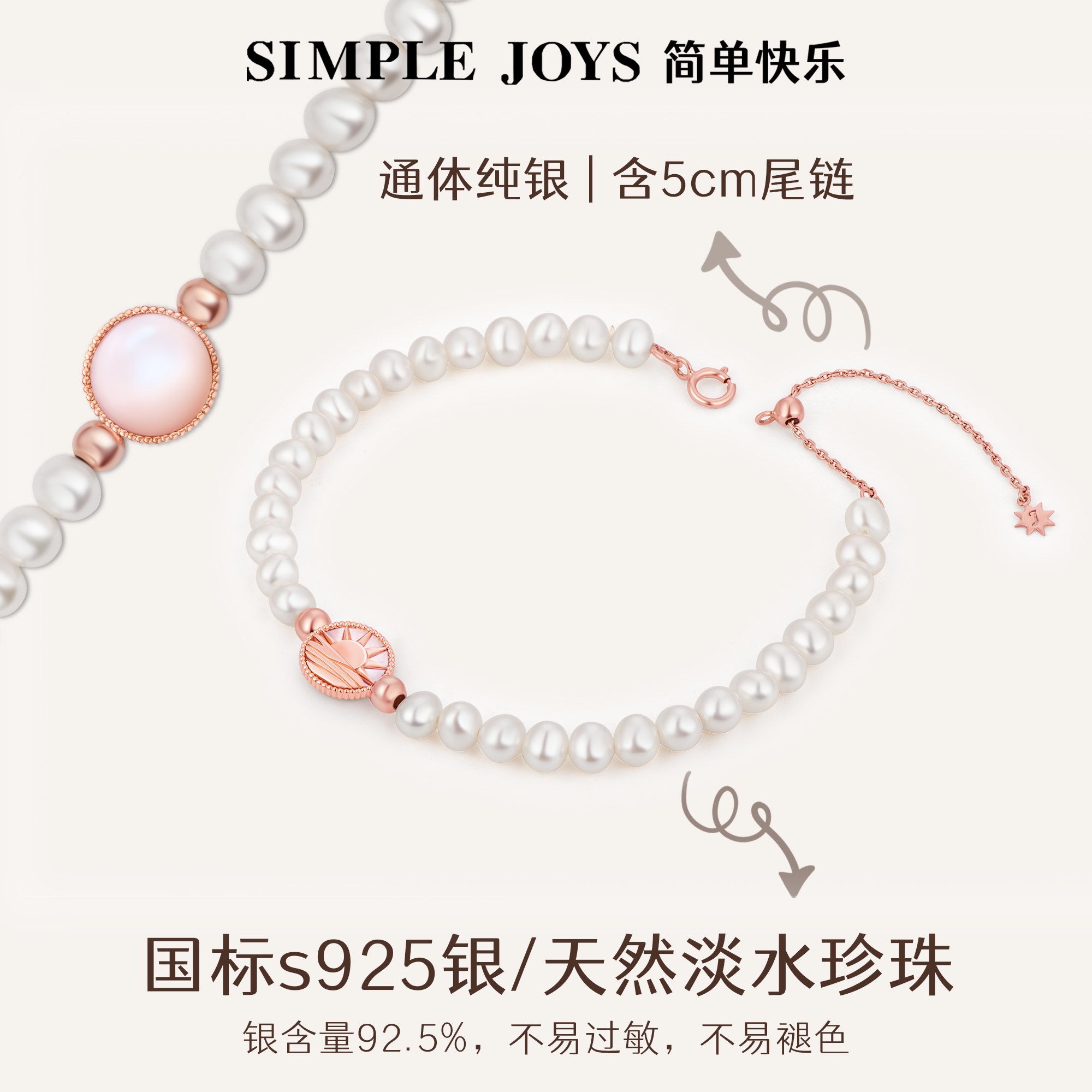 SIMPLEJOYS简单快乐日落太阳粉母贝925银淡水珍珠手链原创设计