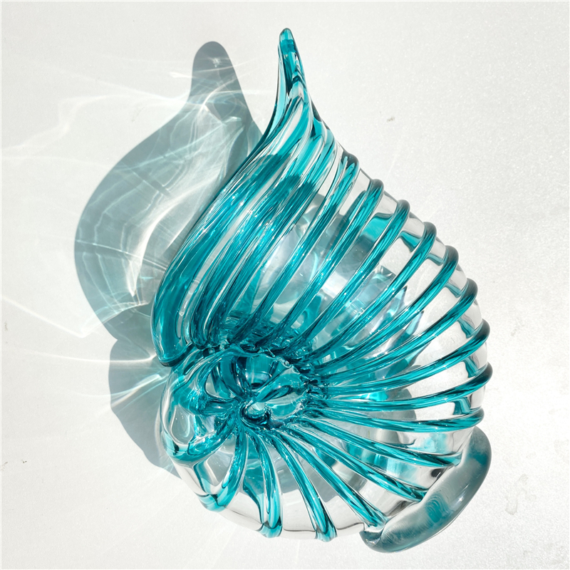 出口国外手工玻璃蓝色大海螺鎏金装饰品摆件家居简约水晶工艺品