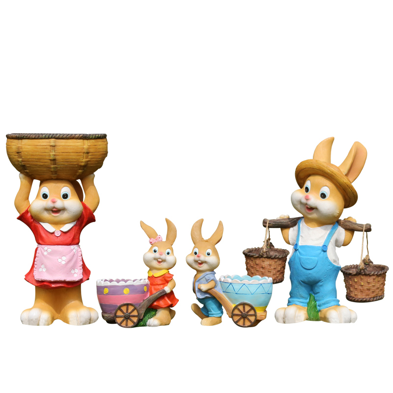 户外花园卡通兔子多肉动物花盆雕塑庭院园林创意树脂装饰工艺摆件