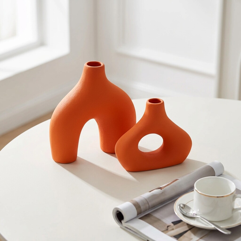 北欧风橙色陶瓷花瓶创意客厅装饰摆件家居艺术品
