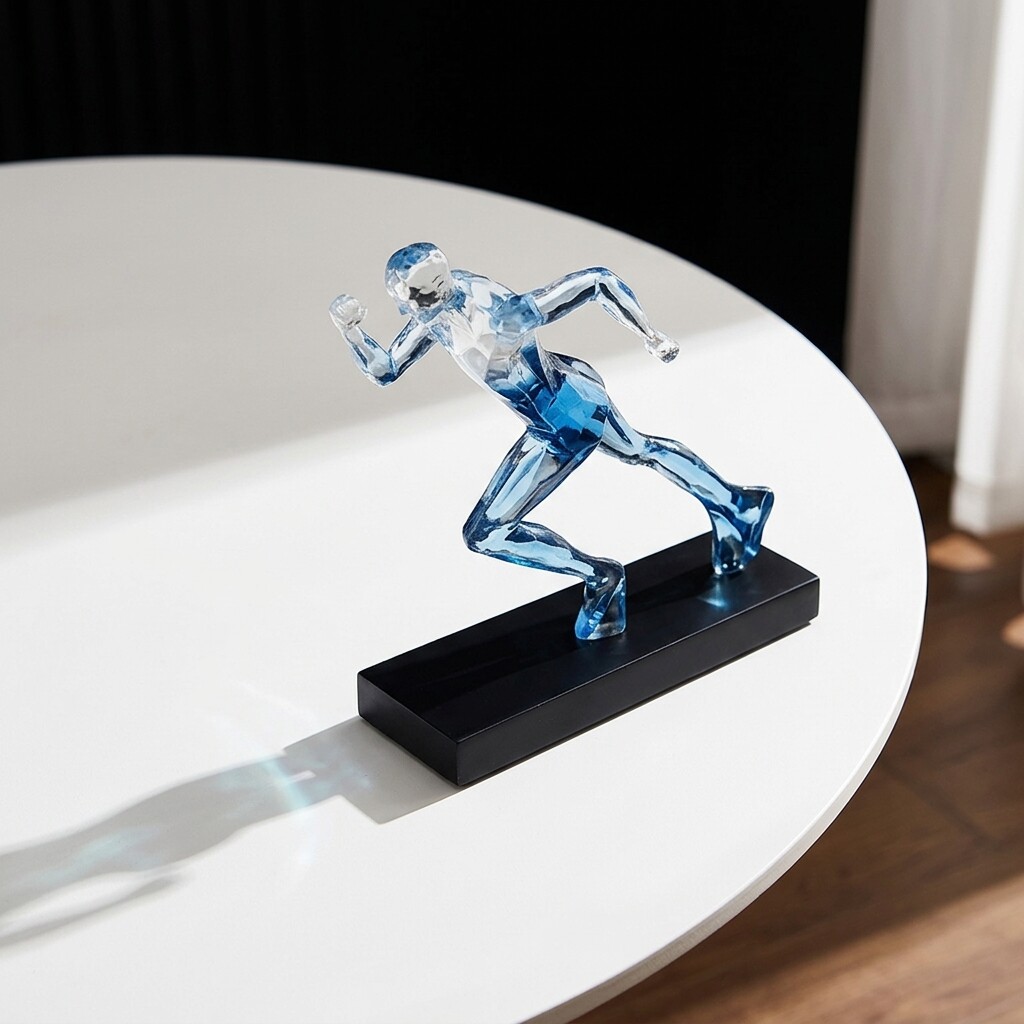 现代简约透明树脂跑步人物装饰摆件桌面工艺品蓝色
