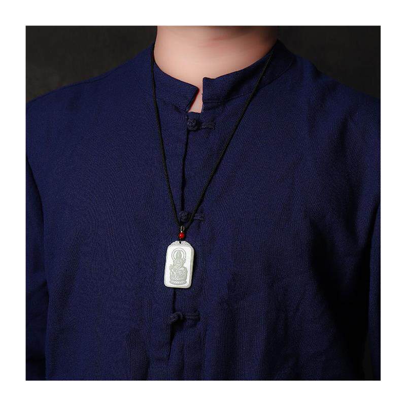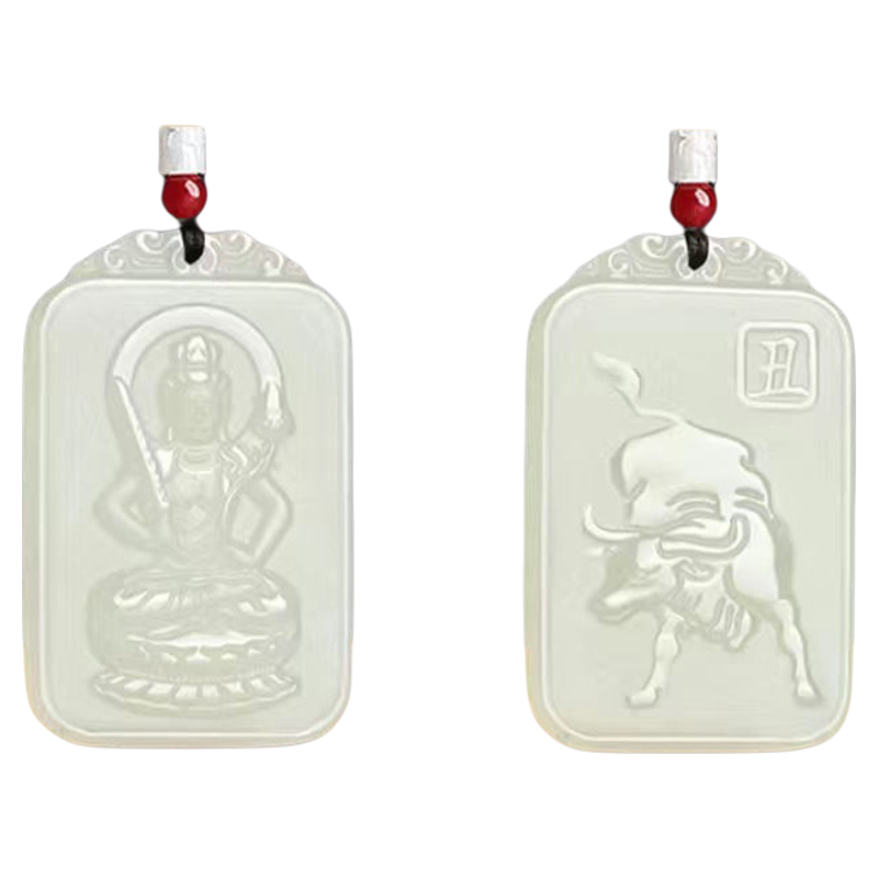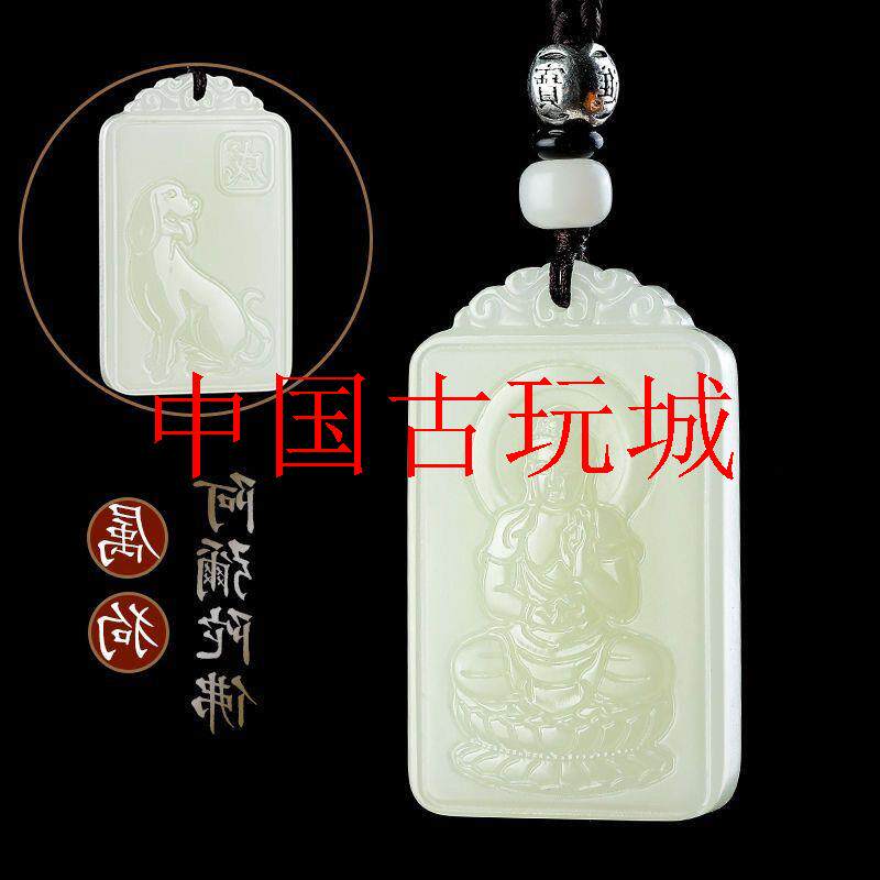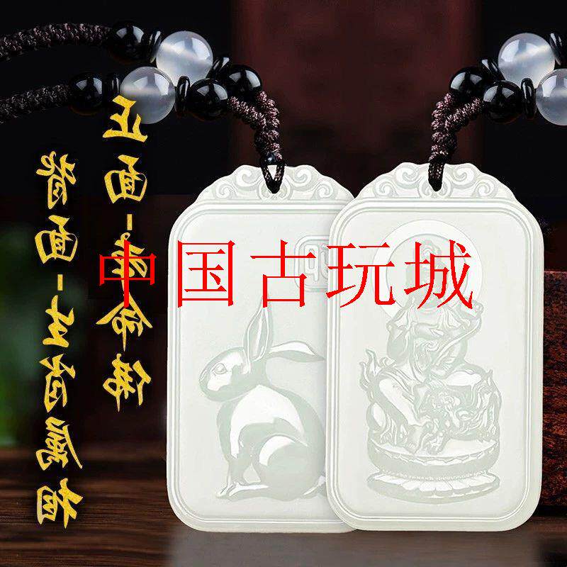 新疆双面雕刻青白色和田玉十二生肖守护神男女款玉坠挂件玉佩玉石