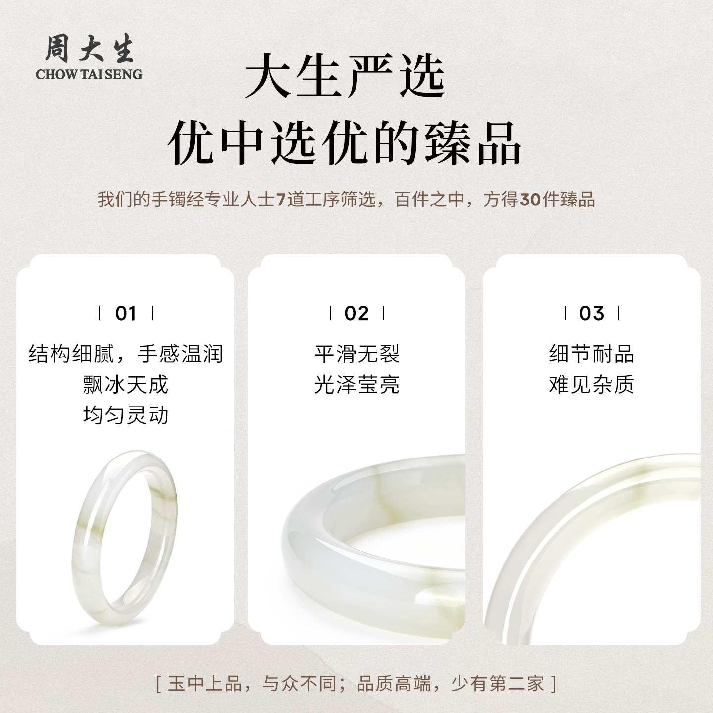 周大生官方烟岚云岫和田美玉手镯正品高端平安镯生日礼物送女友