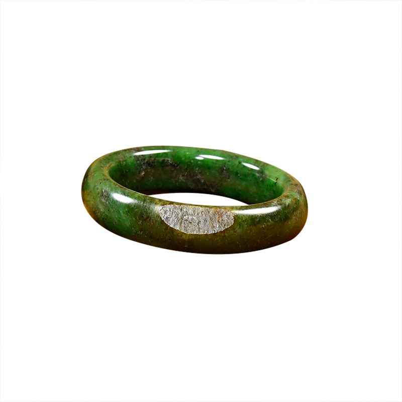 紫润轩新疆和田玉碧玉籽料手镯55MM黄皮菠菜绿玉镯宽版哑光收藏