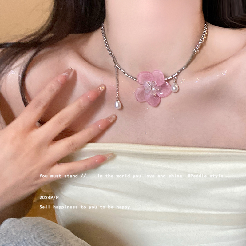 桃花朵朵~甜美珍珠花朵项链女choker锁骨链温柔颈链高级气质配饰