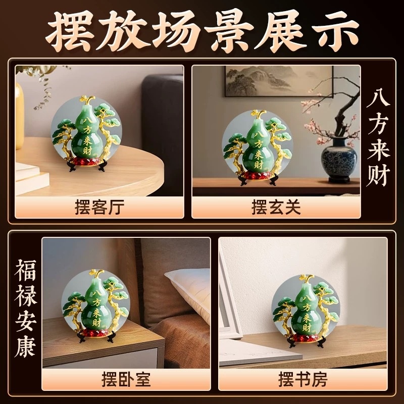 八方来财招财客厅摆件家用旺宅转运桌面翠玉葫芦摆台居家玄关摆台