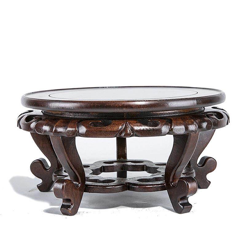 花盆鱼缸底座托架佛像奇石头摆件工艺品垫高底座缸架实木托盘圆形