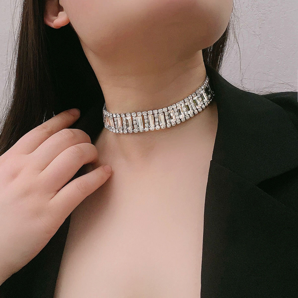 Bling闪满钻项圈2025年高级感表带宽版锁骨链网红叠戴颈链choker