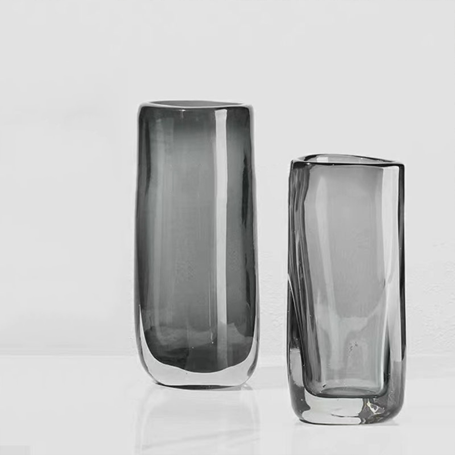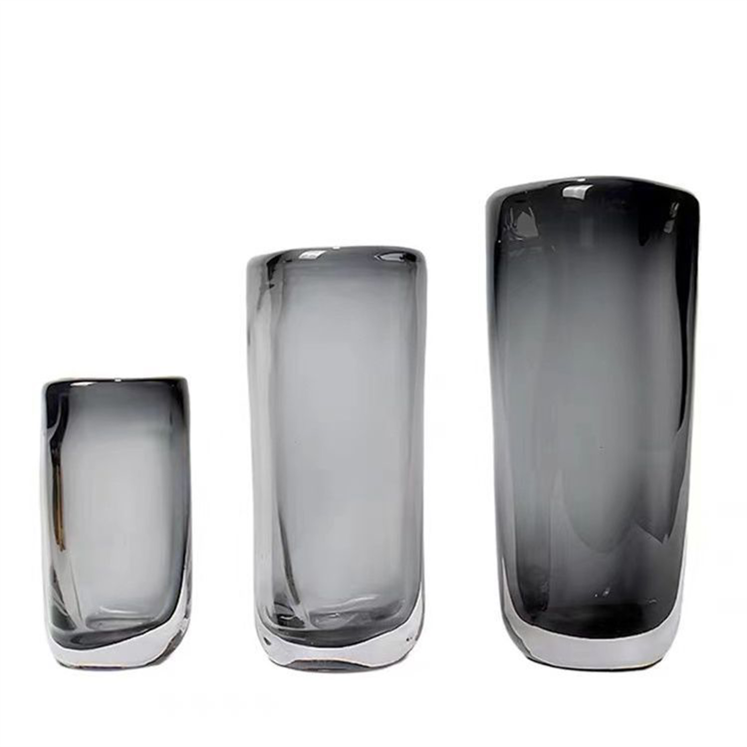 现代轻奢灰色玻璃花器加厚样板间民宿客厅电视柜桌面花插琉璃饰品