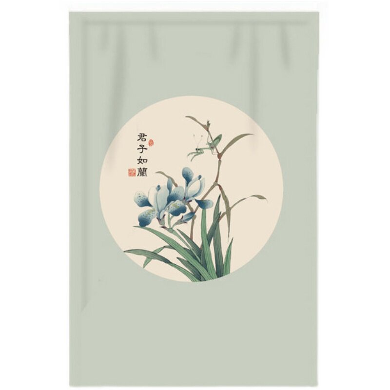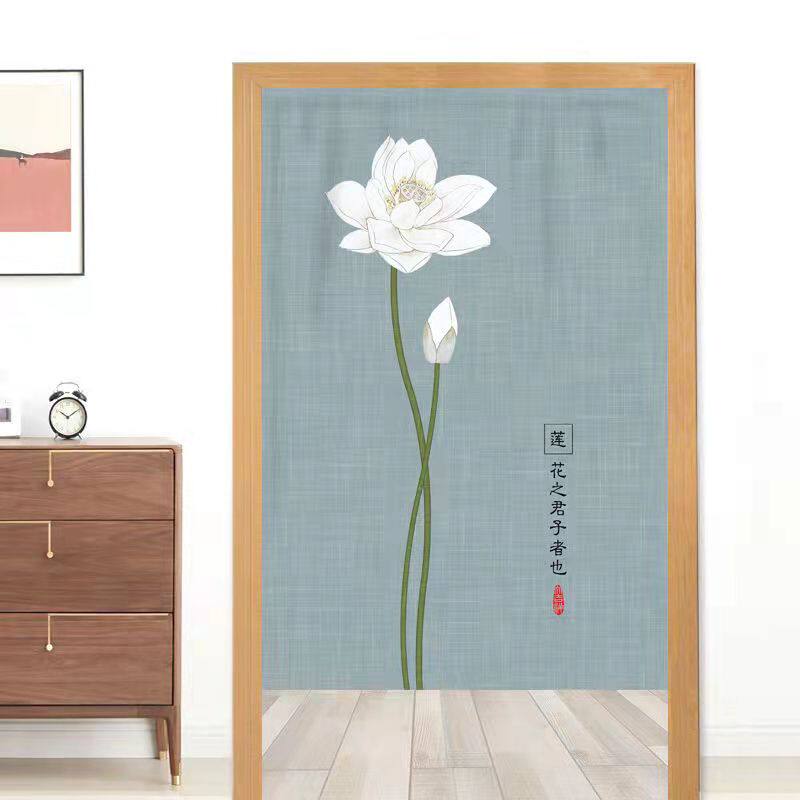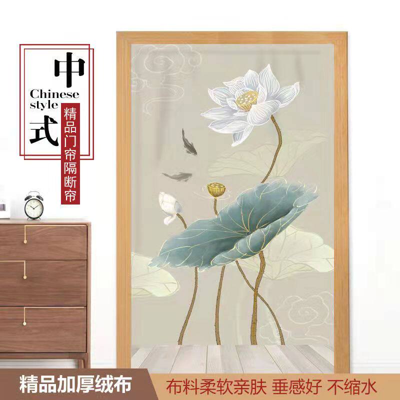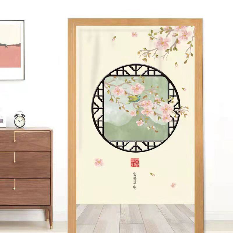 中式布艺门帘免打孔帘子客厅隔断帘卧室卫生间隐私帘半帘厨房防油