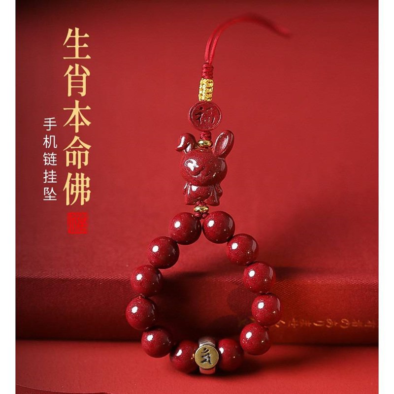 朱砂手机链十二生肖挂饰本命佛挂坠精致手机吊Q坠挂件女低含量朱