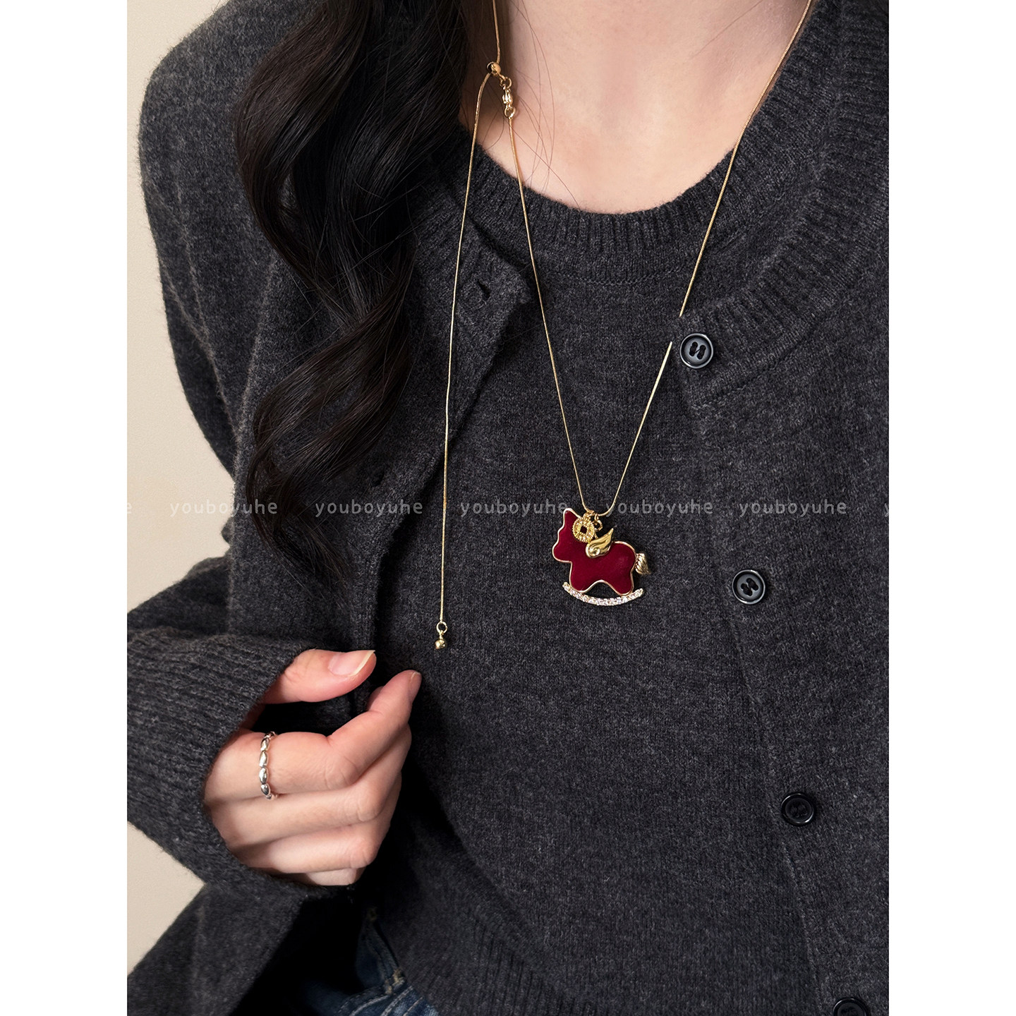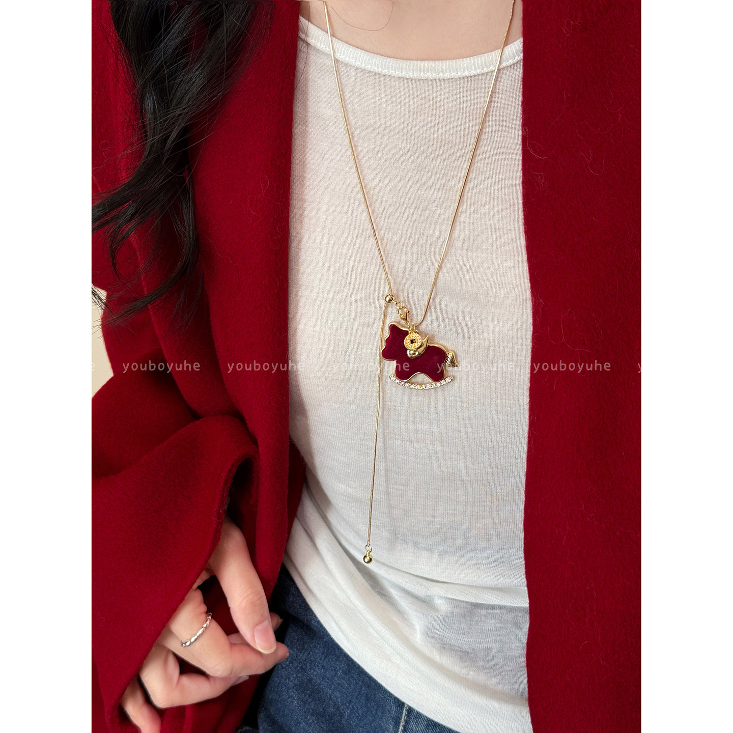 新年红色小马吊坠项链女高级感秋冬长款毛衣链日常百搭本命年配饰
