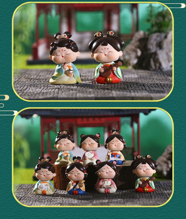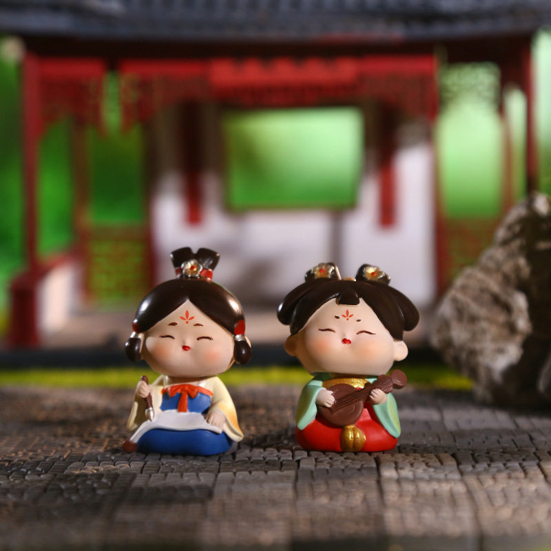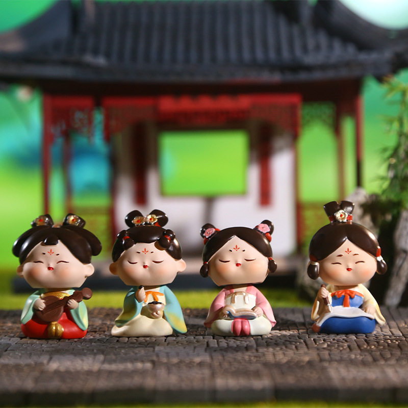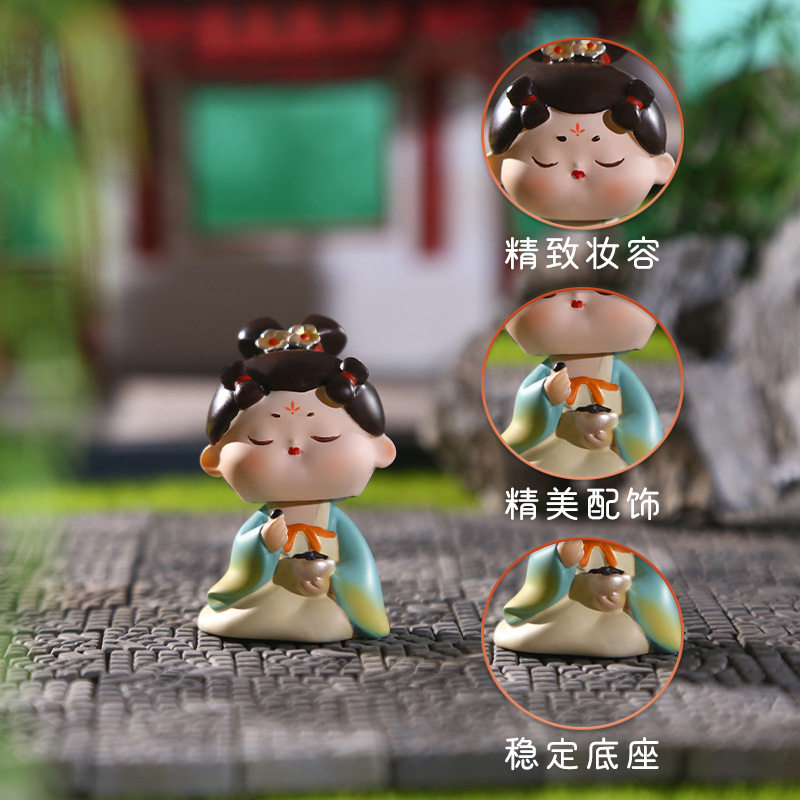 新国潮风唐仕女摇头娃娃摆件古风少女桌面车载装饰品西安文创礼物