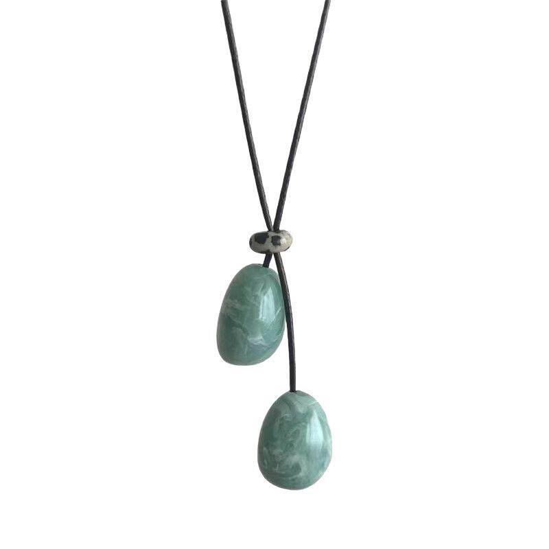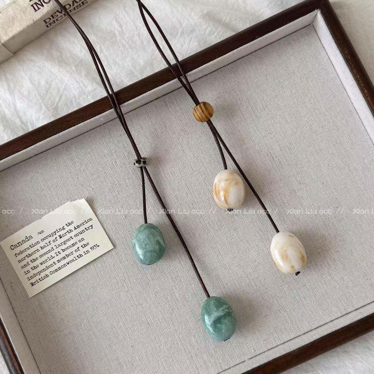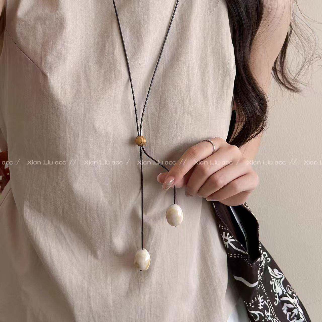 绿色木质圆珠长款项链吊坠绳女款森系复古设计毛衣链小众挂脖配饰