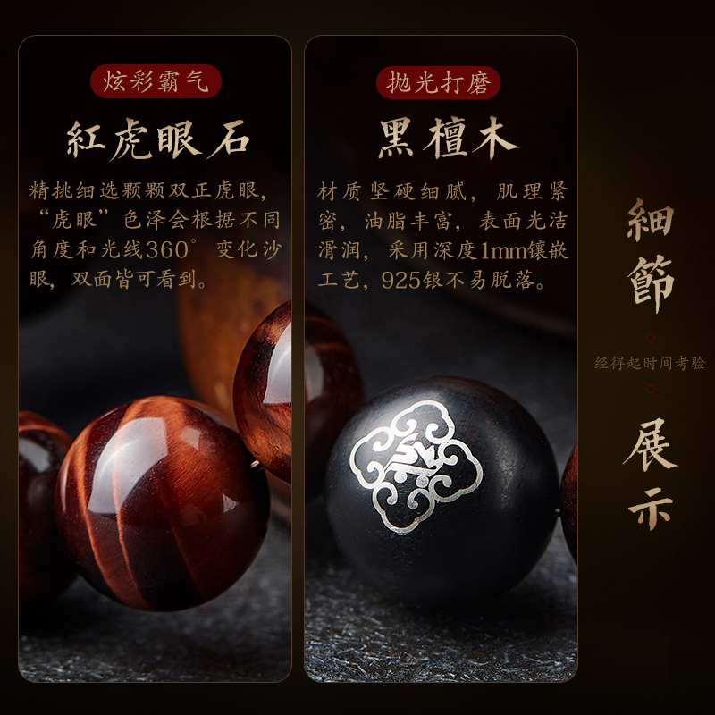 红虎眼石手串男士黑檀木本命佛文玩佛珠盘玩高级感闪电虎晴石手链