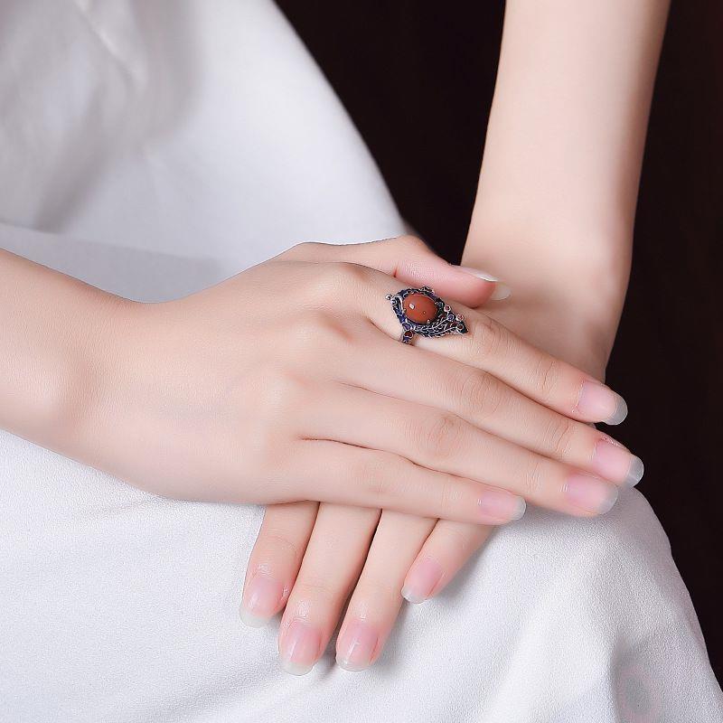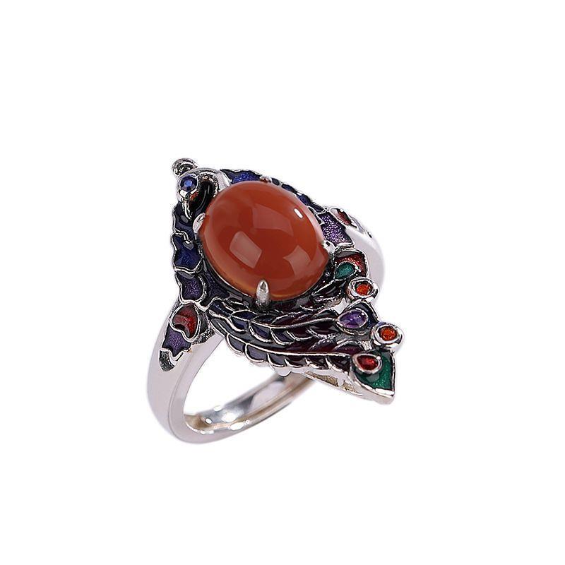 2024新银南红景泰蓝凤凰气质女士戒指复古民族风做旧个性开口指环