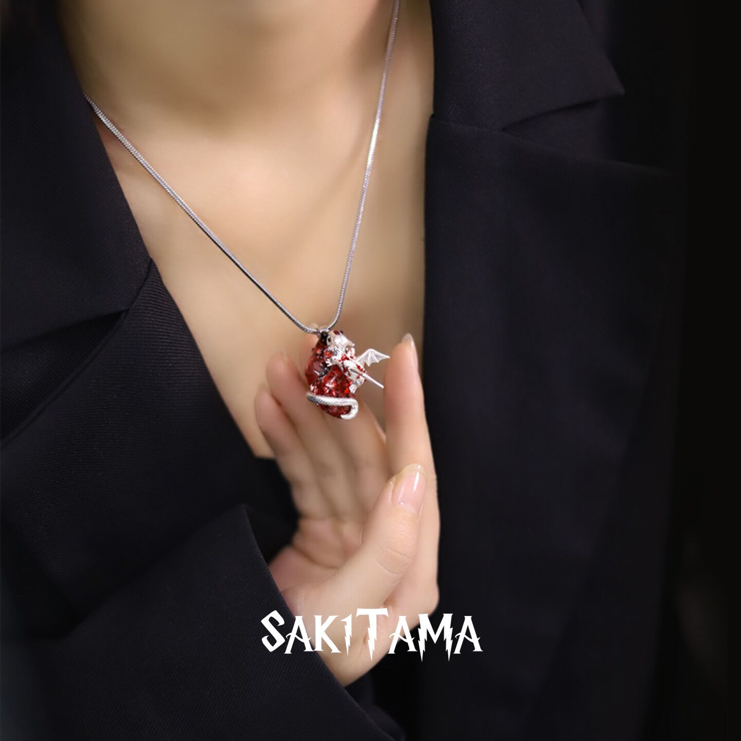 SAK1TAMA原创设计S925纯银飞龙守护心脏项链女设计感吊坠生日礼物